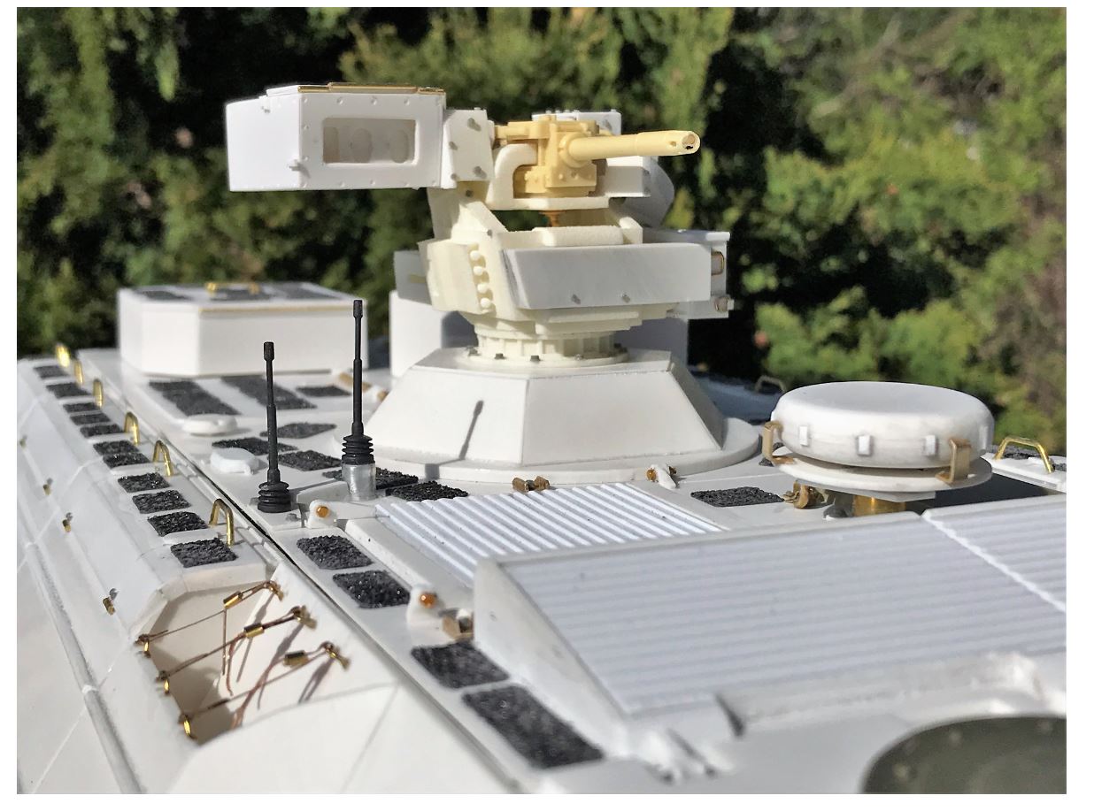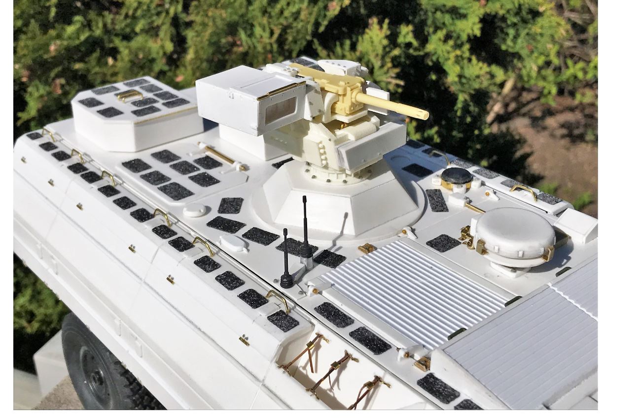 The translucid gun flash will disappear once the resin gun is primed and painted. With a very fast rate of fire of 340 rounds per minute, the GMG 40mm automatic grenade launcher is well represented using the machine gun 1 flash and sound of the TK40 control board.