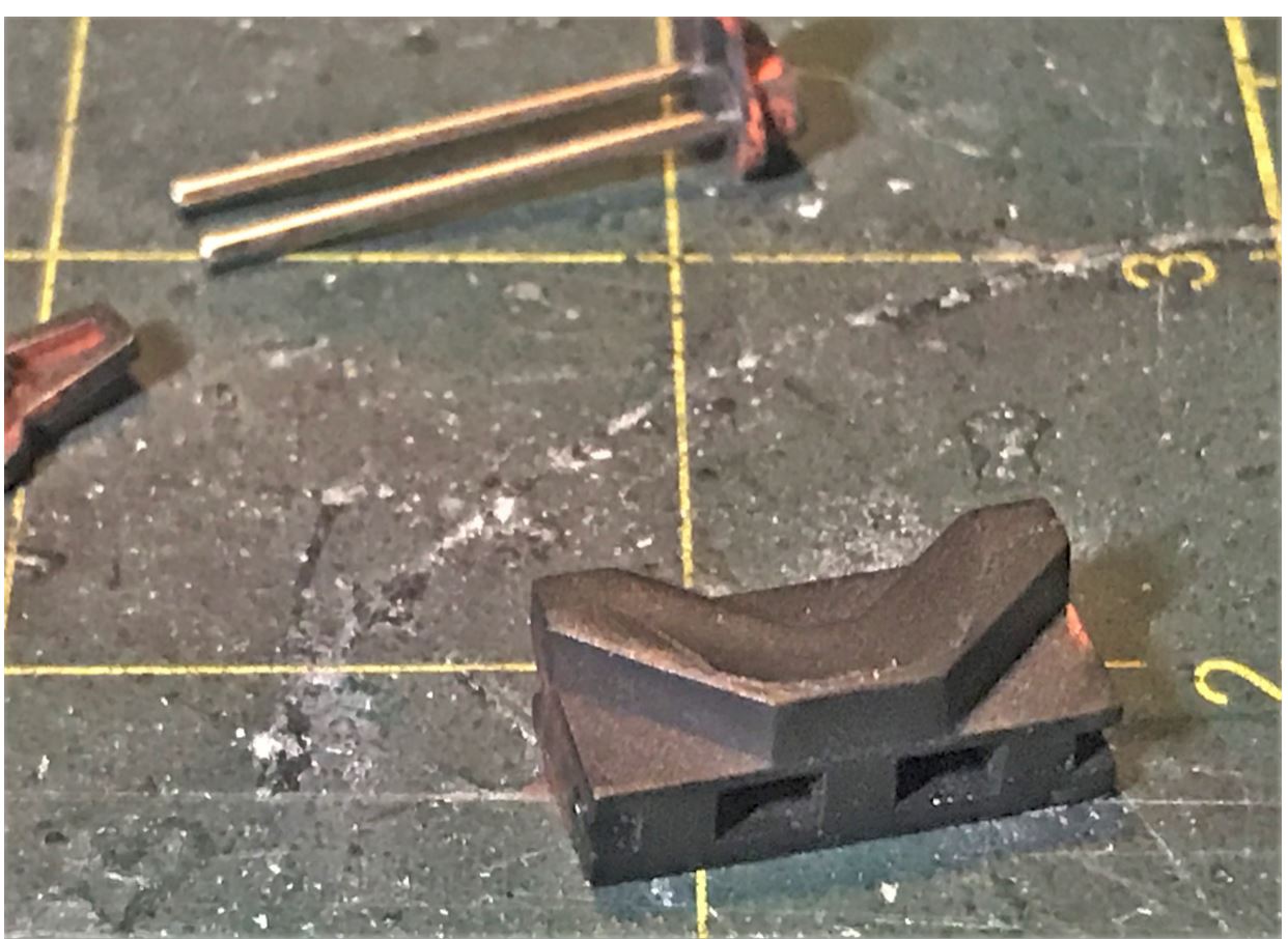 The Vandra M3 front fenders are installed on the Mato hull, they fit with the normal process of cutting off the old ones and preparing the plastic surface for them. They have a weakness at the front, having not much support on the exterior section. I put in a side to side brass rod as support to make them strait horizontal, it does not show under them and it provides much needed strength to the resin fenders.