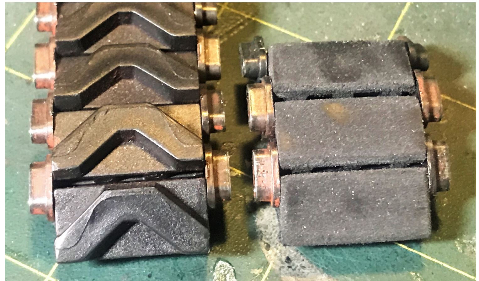 And here we have realistic T41 tracks for the M3 Lee tank. The proof of concept is a success. I have also purchased a 2mm rubber sheet just in case. I need to check the best options between 1mm or 2mm rubber pads. Brand new, these should be like 1.5mm thick, 1mm to 0.5mm is good for worn out tracks. Now, i will start an assembly chain whenever i feel like it... Something like 78 links per tracks.