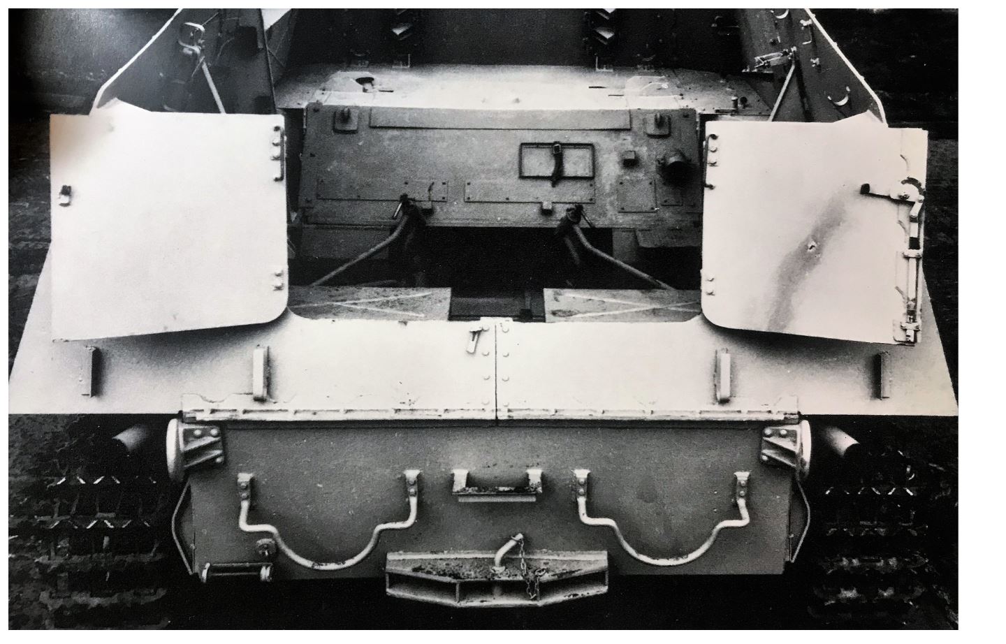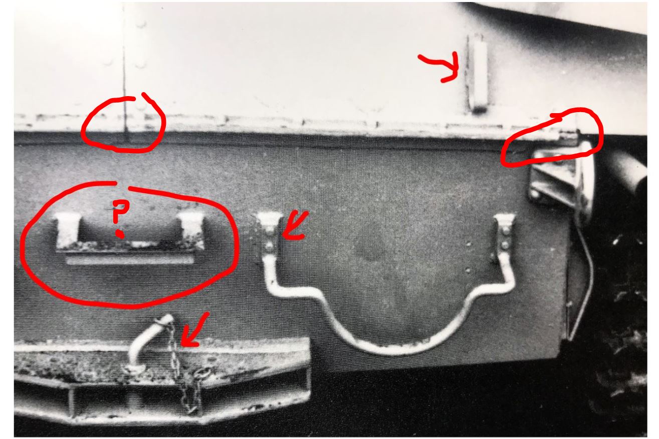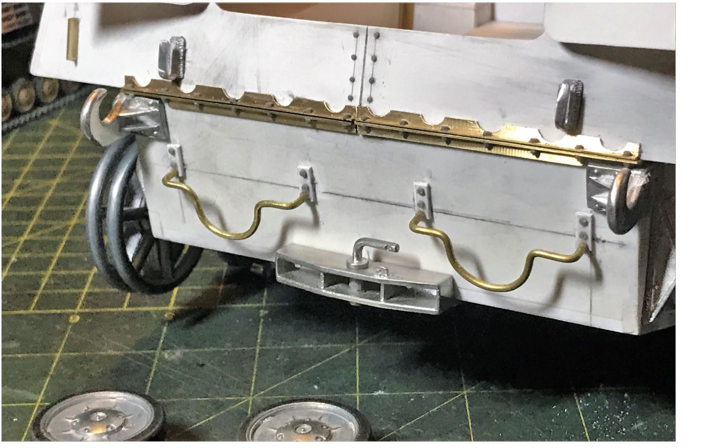Some of the features on the back plate. I still need to do the part in the middle which i earlier thought was a bracket for the muffler but more study seems to suggest it is a step to climb on the vehicle. The curved bars to hold the spare wheels have a different patterns depending on the vehicle. i have decided to reproduced the version seen here.