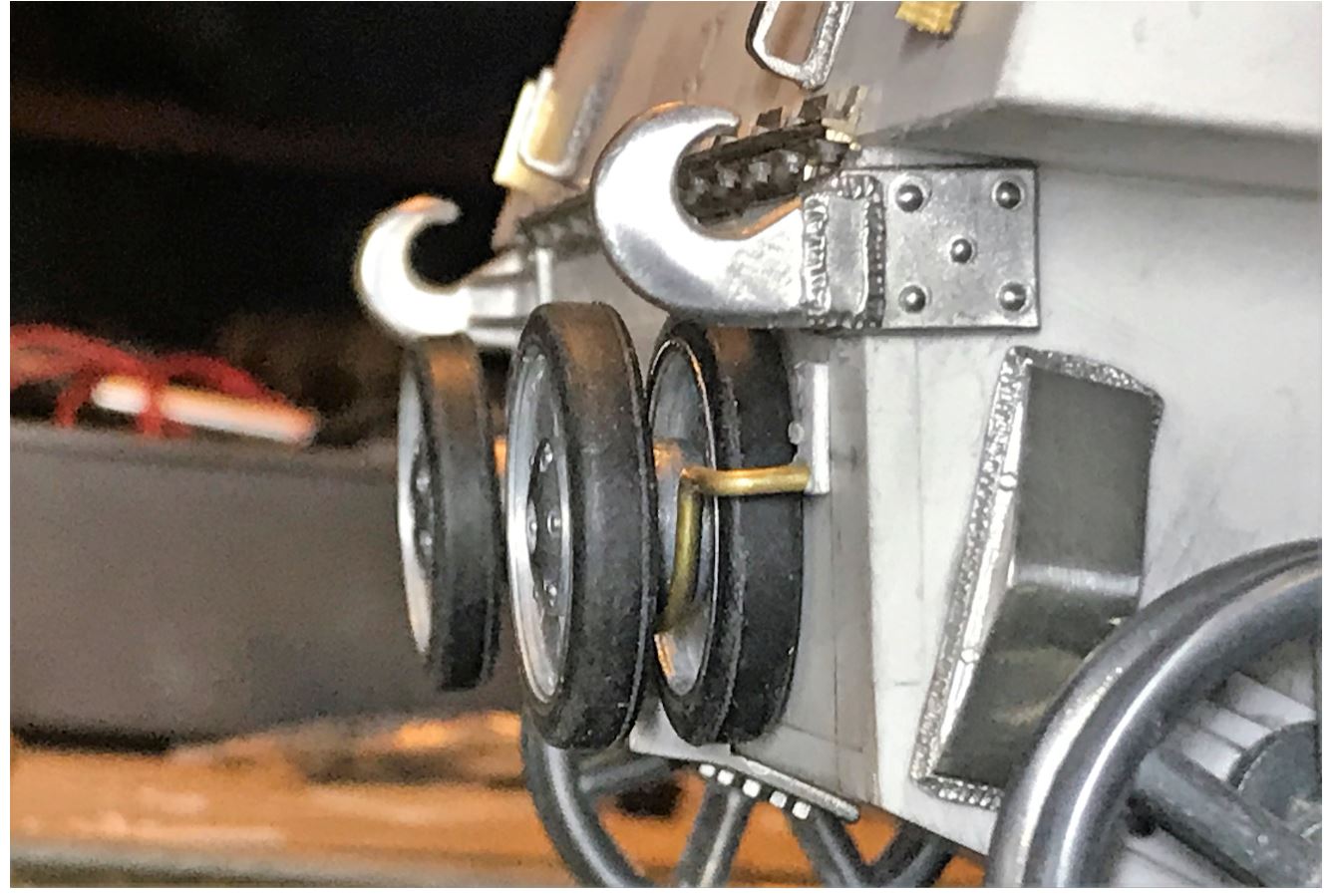 The brass rods go strait inside the vehicle armor for a more solid spare wheel bracket. The wheel are removable.