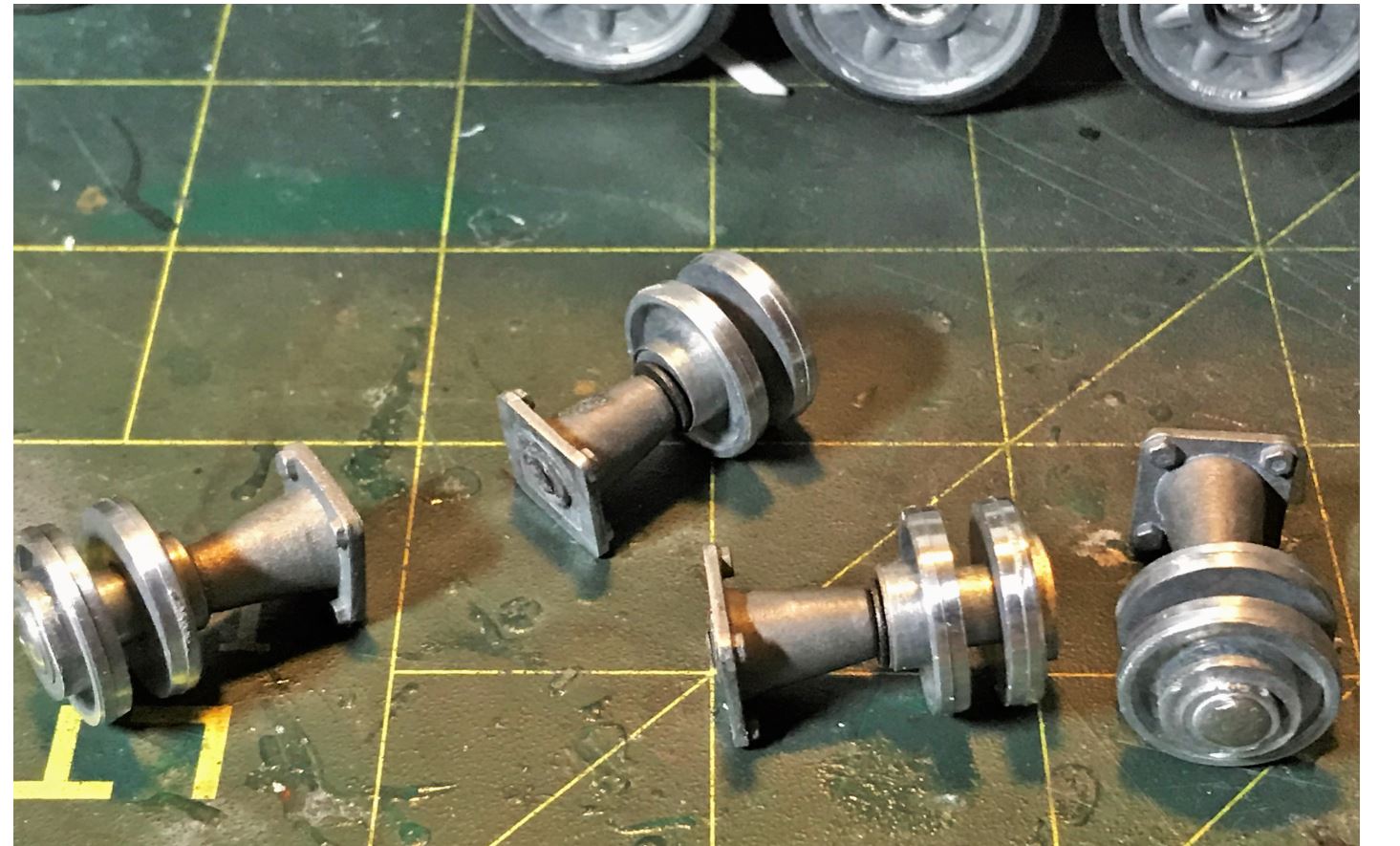 These are the parts assembled for the return rollers. There are Mato late Panzer IV all metal rollers and Asiatam metal mounts, nuts and bolts.