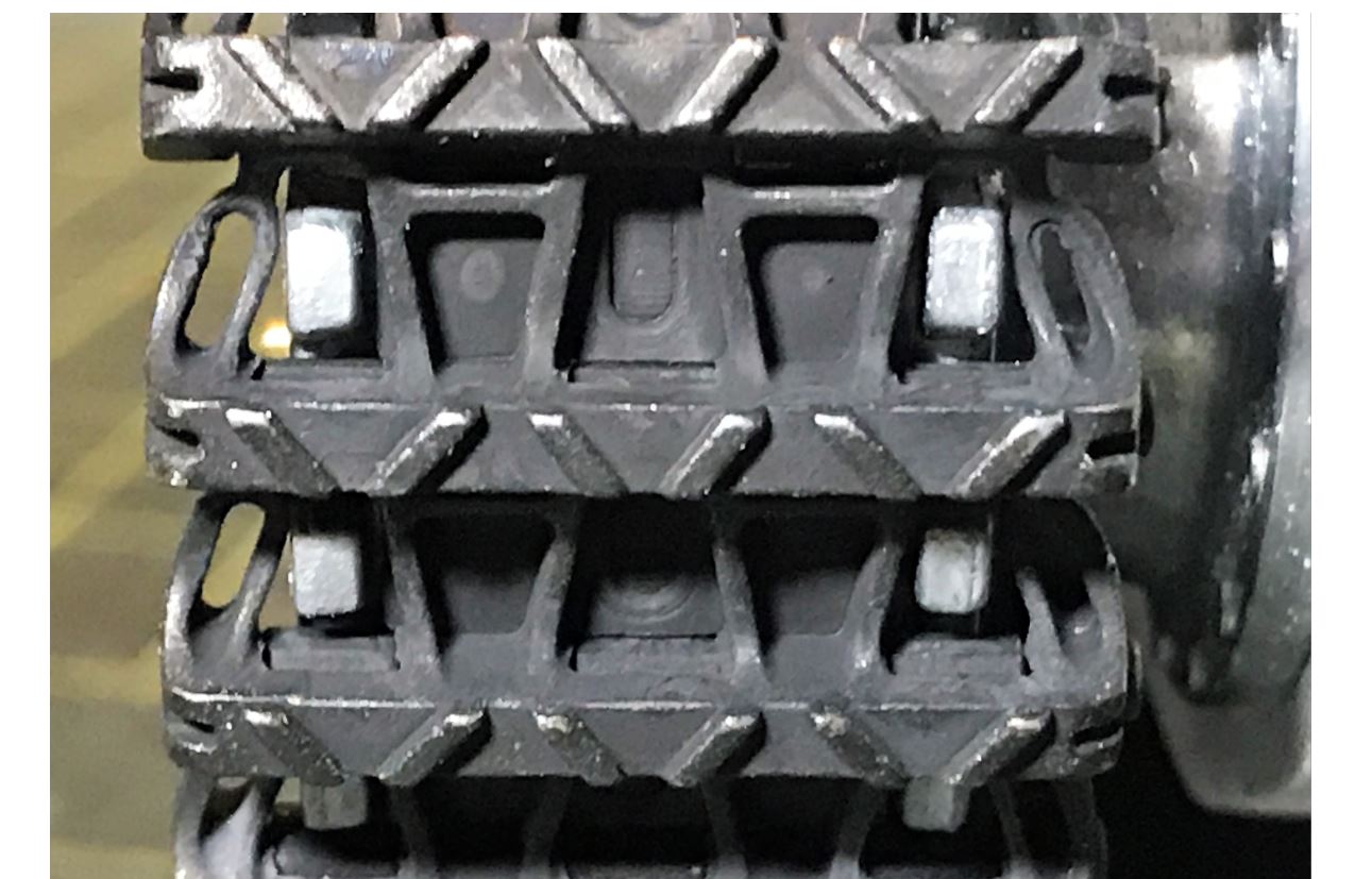 Close up of the metal return rollers.