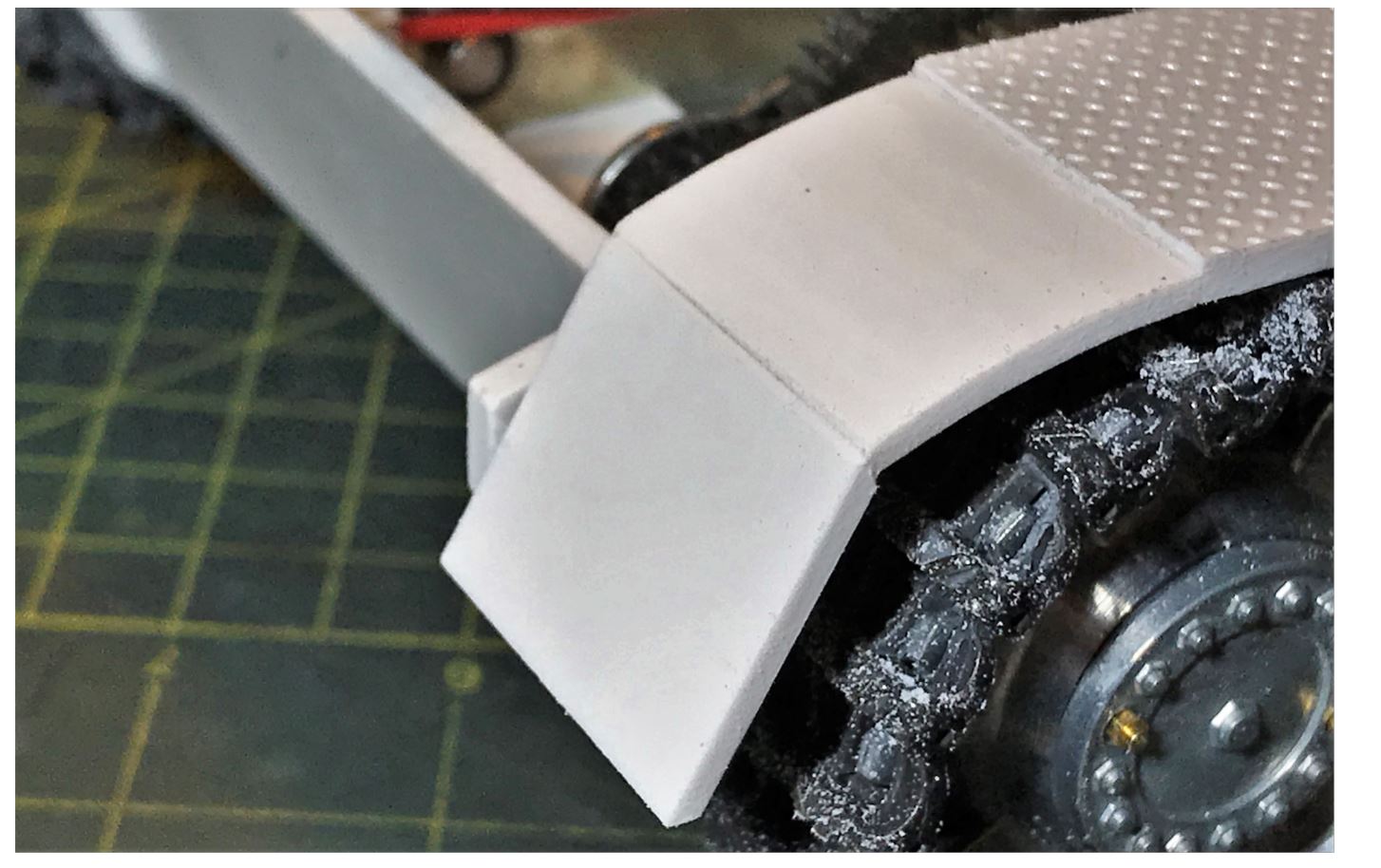 The idea is to do something similar. The Ludwig parts only provides plasticard main sections and a square for the tip. Need to scavenge the sprues to create the flap. Everything else need to be found elsewhere. I used JTT 1/100 single diamond treadplates, also used on panzer fenders.