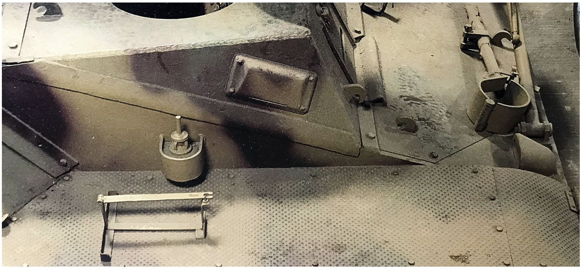 Here are the front fenders at the Saumur Hummel. The tip has a nice curve downwards and a mudflap. The treadplate seen here is the dotted pattern, difficult to find.