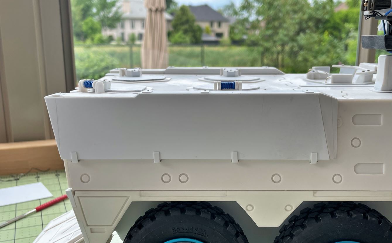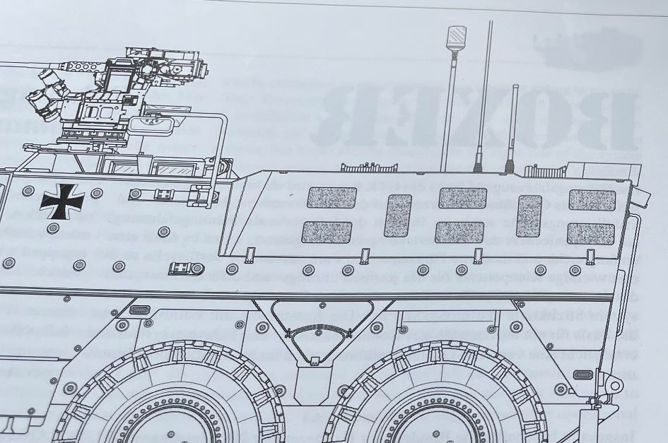 The Tankograd book on the Boxer is an absolute must for this build. The graphs provide accurate dimensions and placement for all the attachment points.