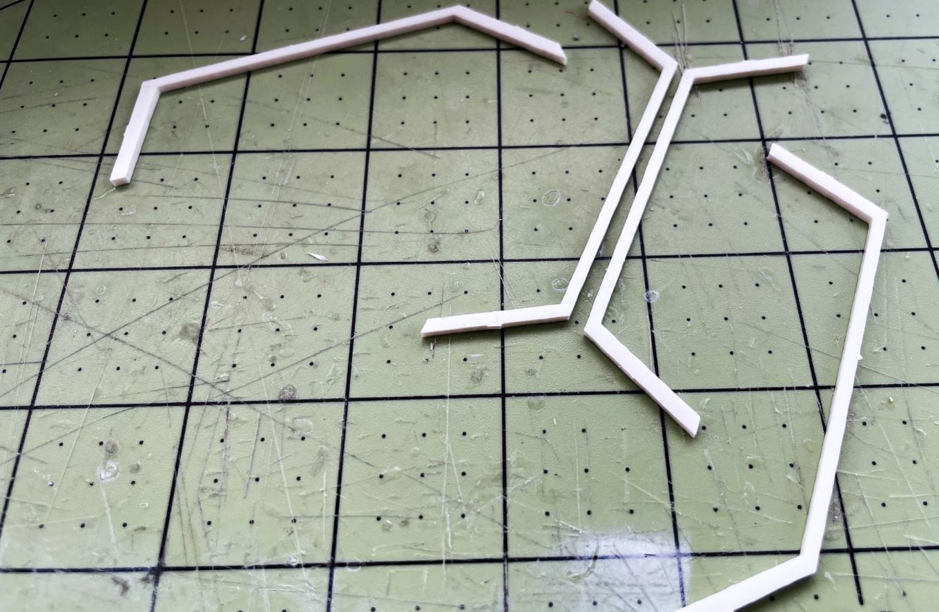 Design is done in plasticard. These have many angles and the design and the construction of both side bins is a trial and error project taking about 2 days...