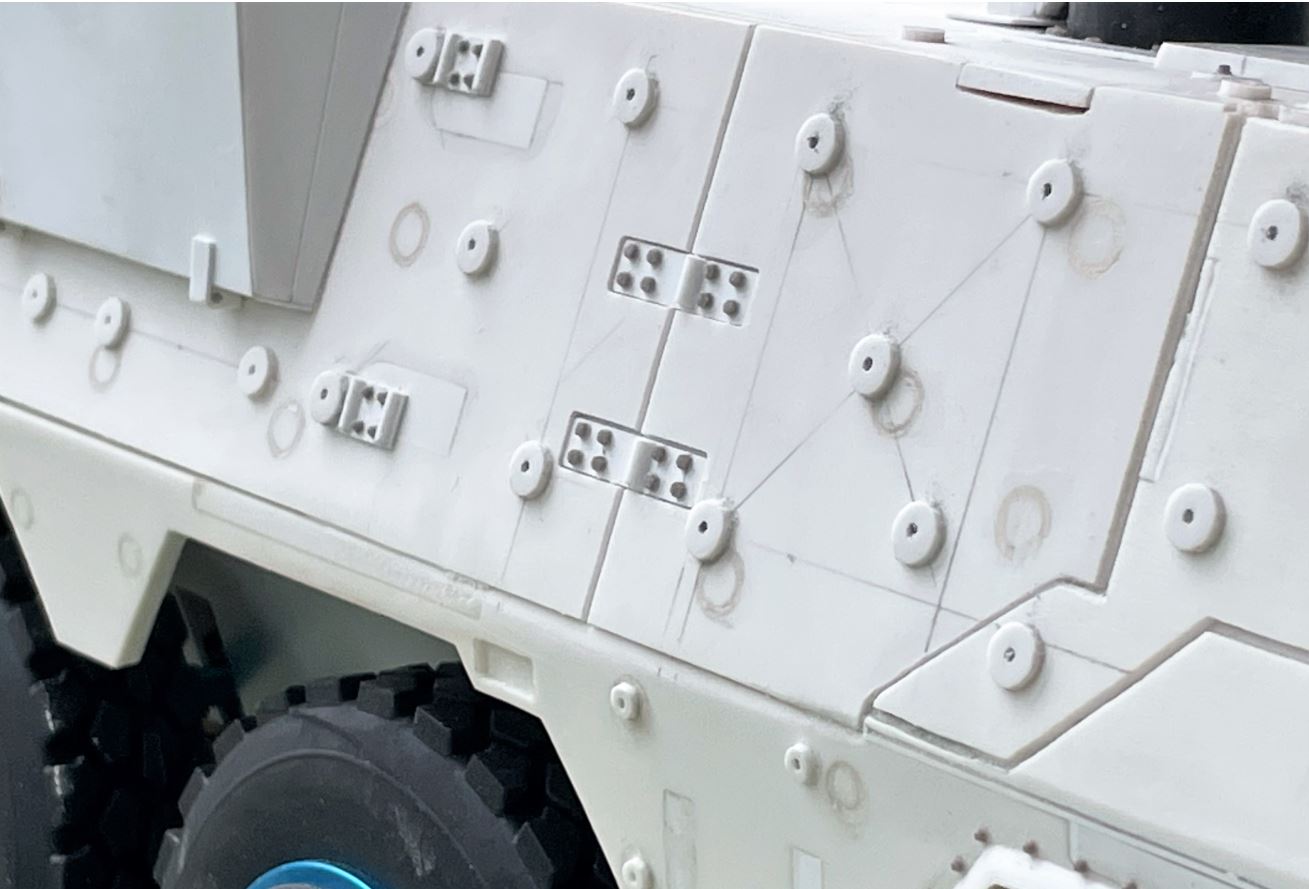 Moving to the Add-on armour attachment points. These are covering the Boxer on all sides and the top. There are probably about two hundreds of them in 3 different sizes.
