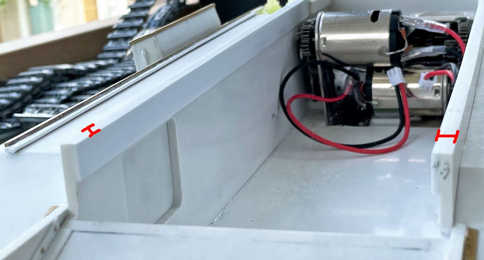 It is very cramped under the hood. Good thing i earlier lowered the Mato gearbox a bit to position it better. It still needed some 0.5mm grinding on the plasticard area over the top motor in order for the deck base to fit in place.