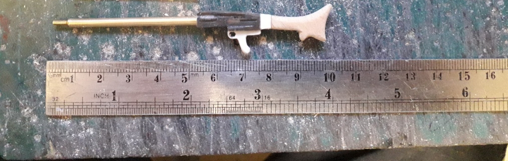 Made from styrene, brass and carved wood for the stock, just need to add the exterior barrel heat shield and sights then stain the wood etc, looks ok so far i think.