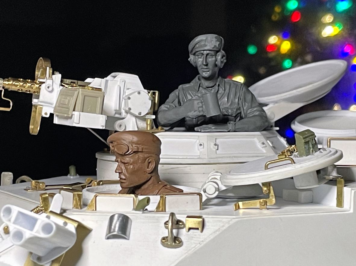 Here is the crew of the vehicle. These are the Commonwealth Summer TC and Driver tank crews provided by Dean of DGS. They are WW2 but the uniforms of the 70s were similar and will be painted olive green. The berets will of course be painted UN Sky Blue.