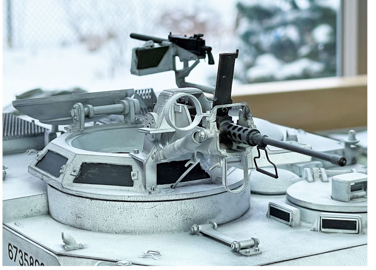 I had difficulty finding references for it. The 1/35 kit is simplified but provided some dimensions for the pipes. All M113 Lynx monuments have their rear machine gun mount removed. Its only on Youtube that i have found a video of a restored running vehicle with all its armaments. I was able to catch a few fuzzy pictures to help me and get the basics of it. I have not yet reproduce some minor details that i would like more investigation done before i do them.