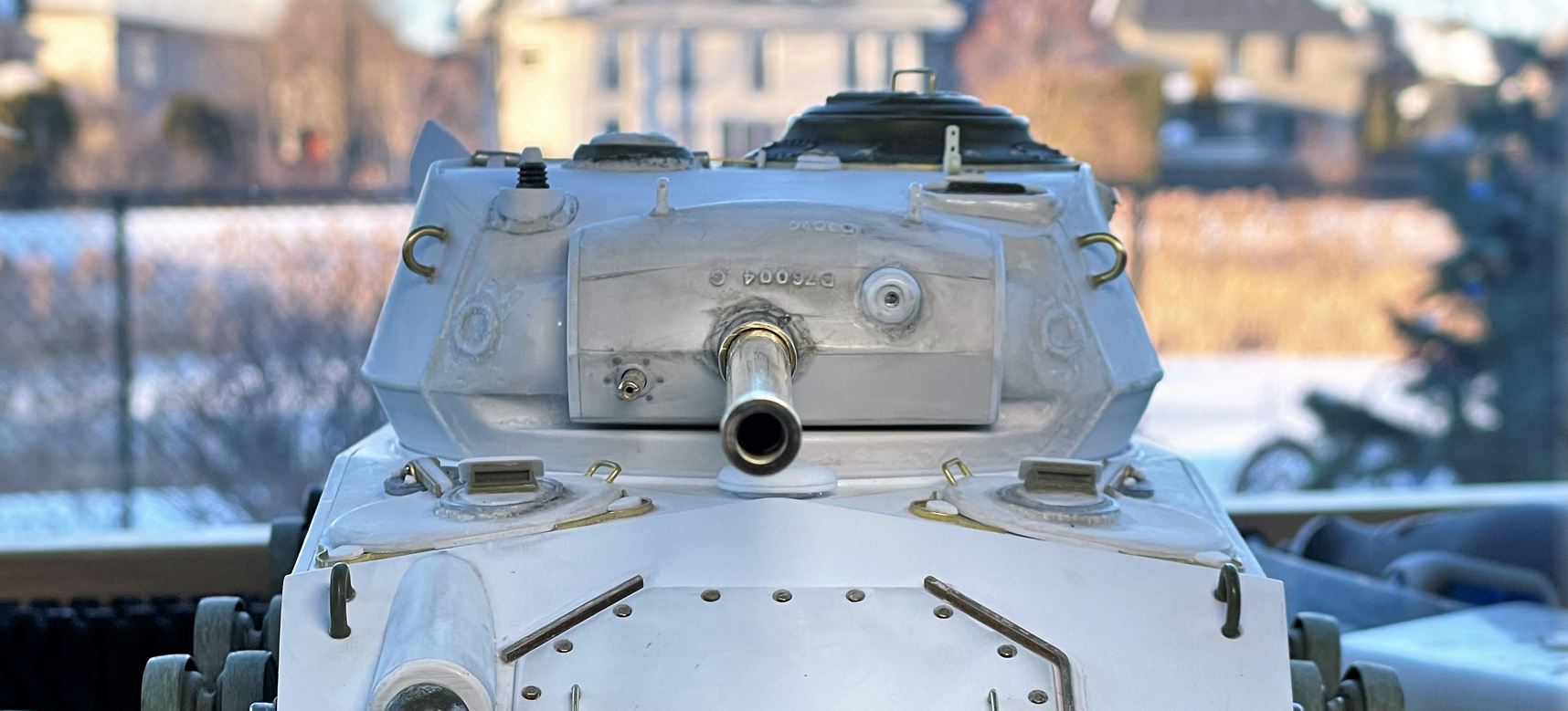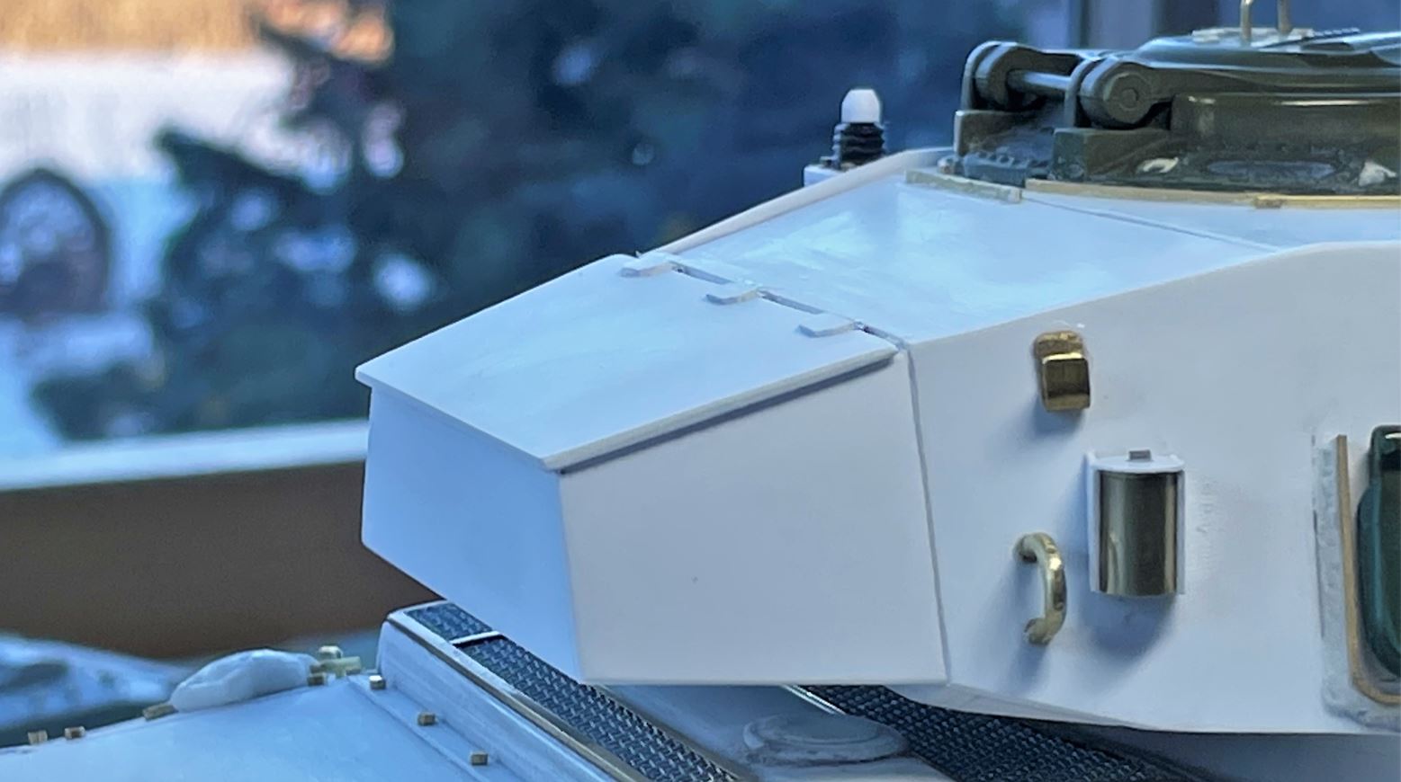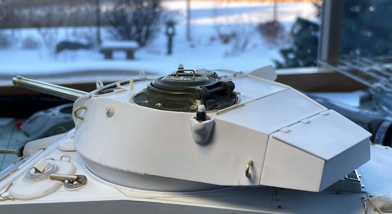 A Heng Long turret side port was used as material for the M24 port, trimmed and modified to look like one.