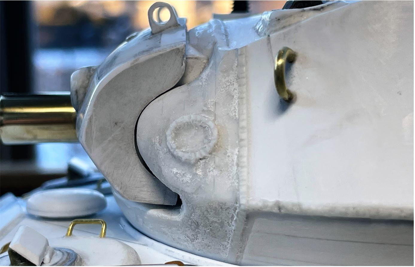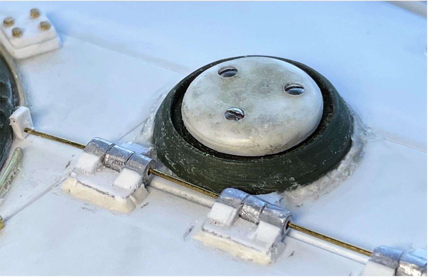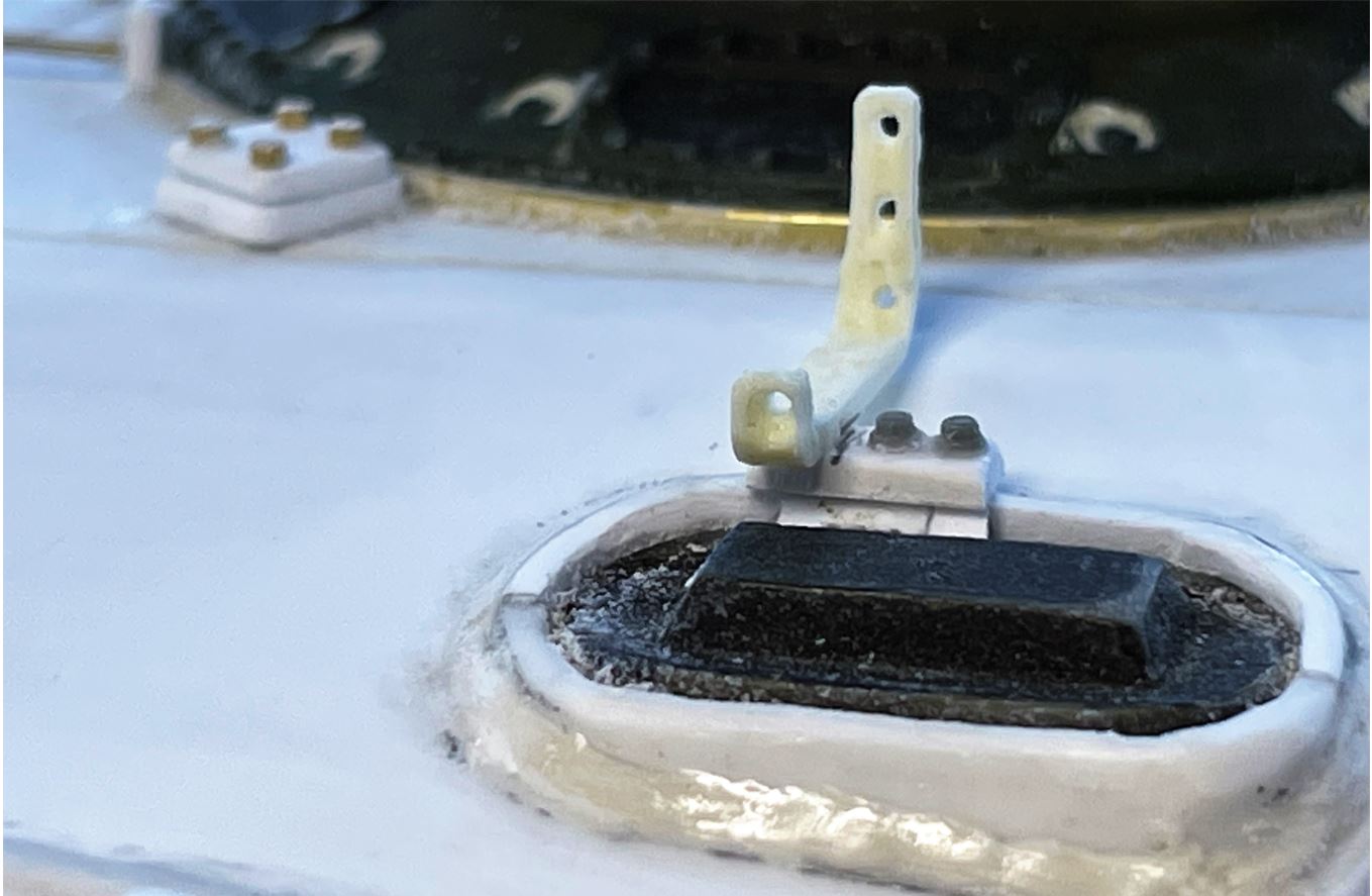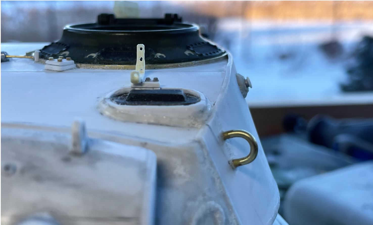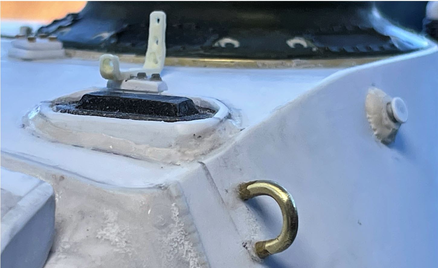 The turret ventilator cover and close up on the gunners hatch hinge. The rim around the ventilator is taken from a Heng Long Sherman turret and significantly reduced and refined.