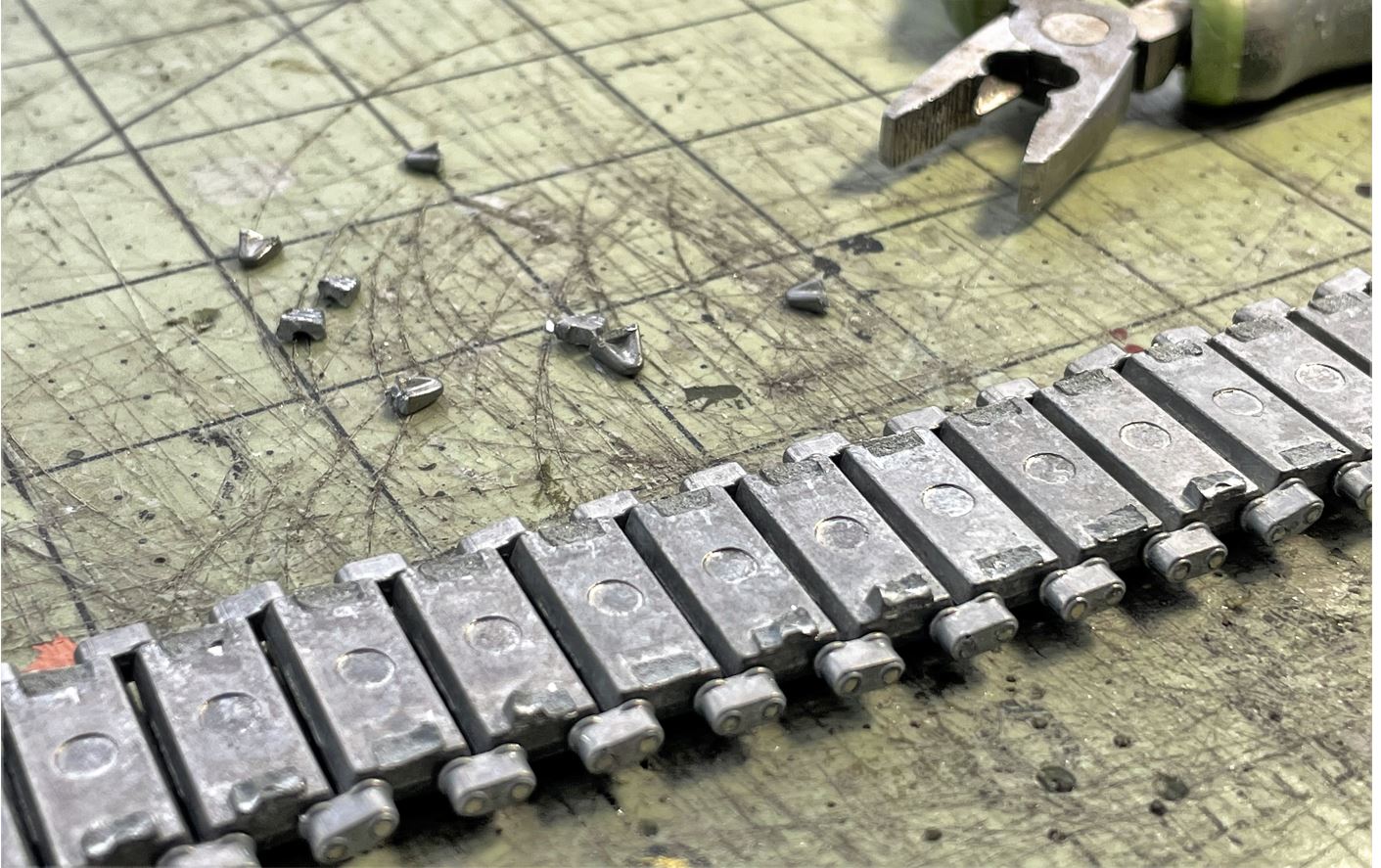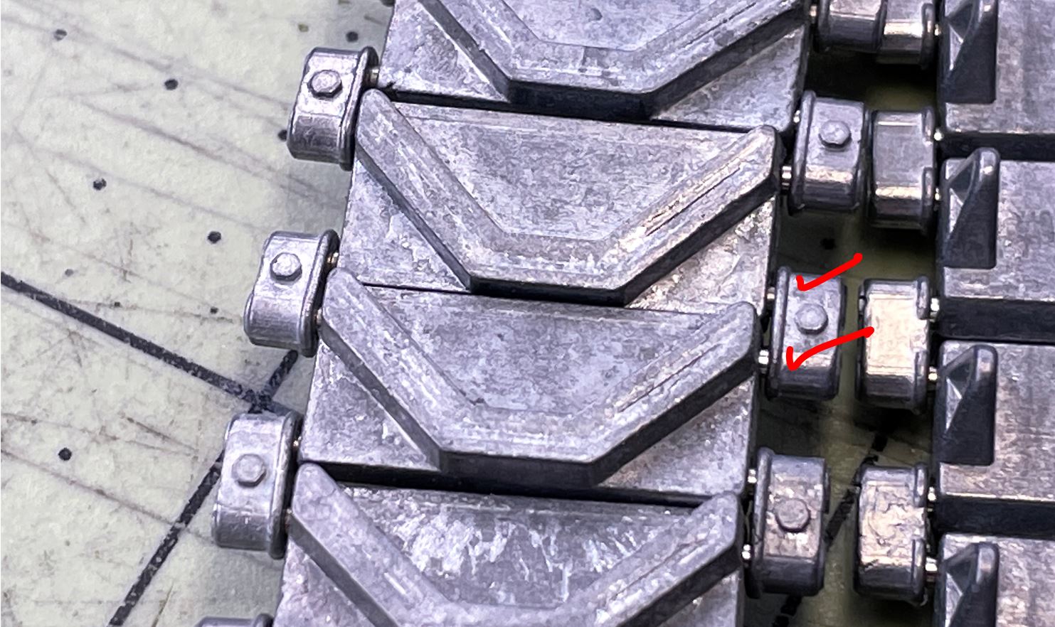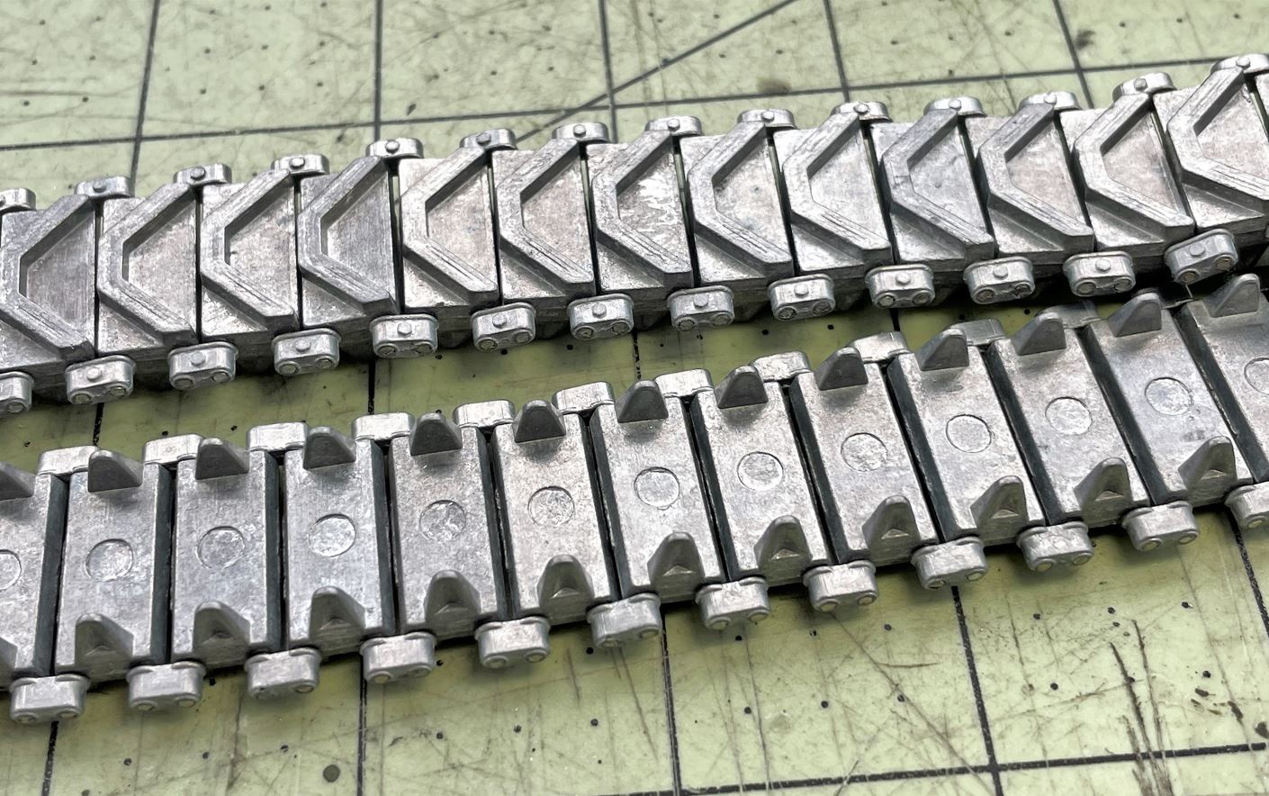 Close up on the new Heng Long T48 metal tracks with double pins.