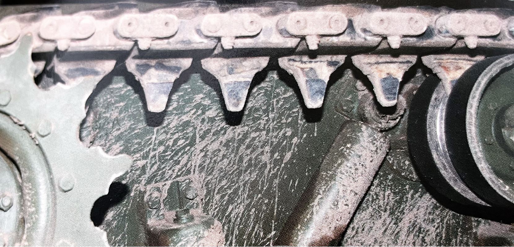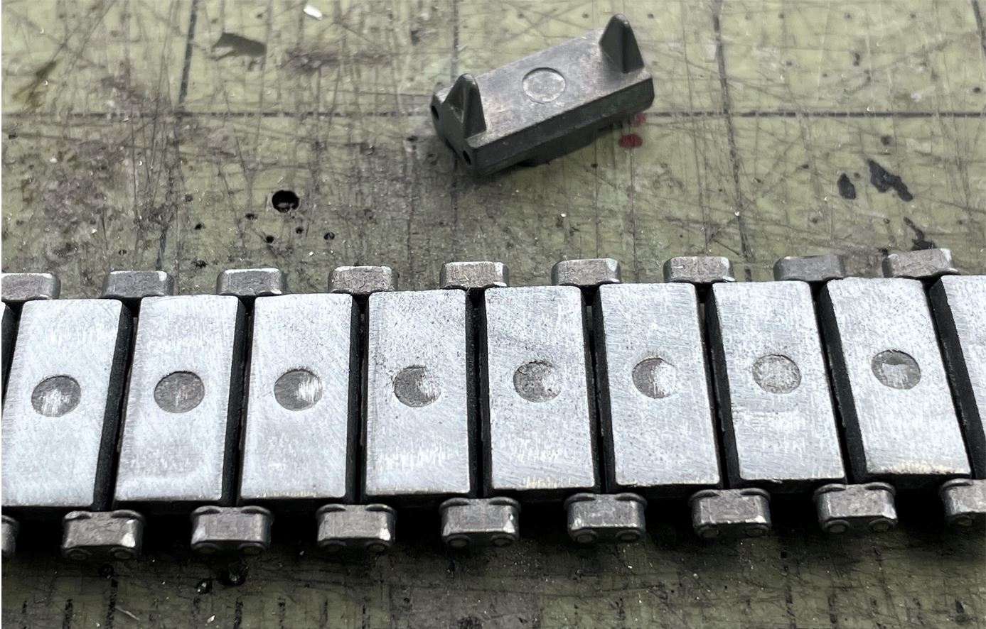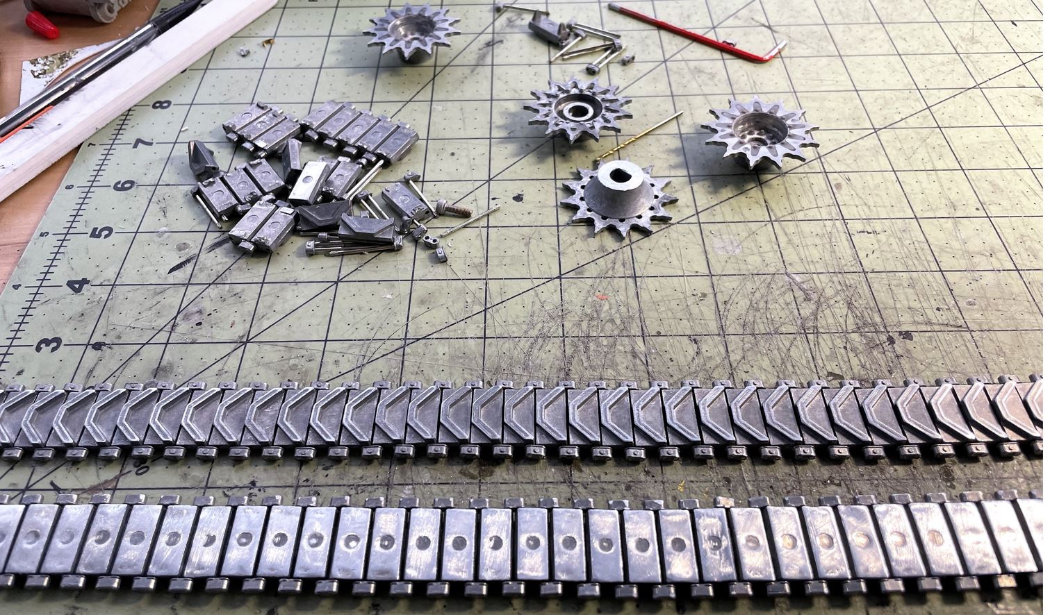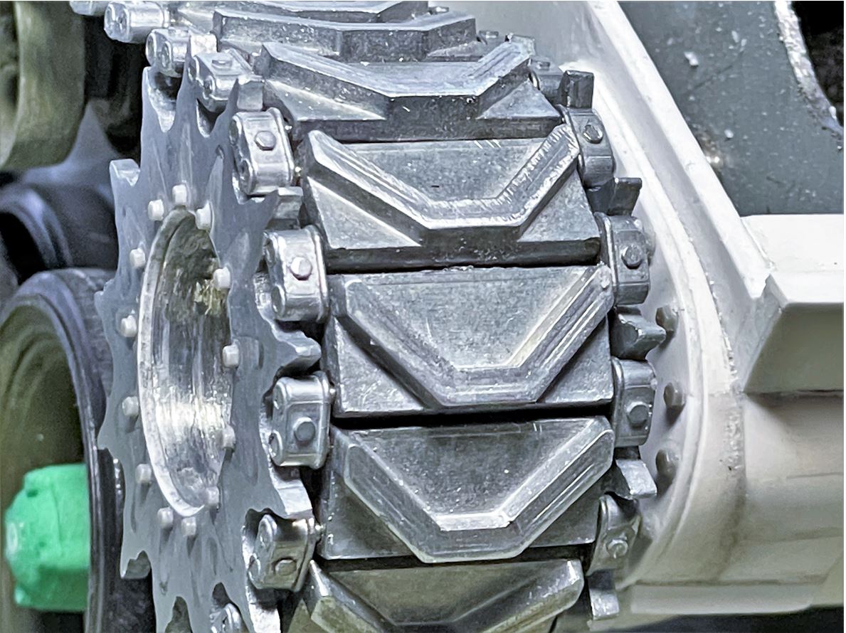 Close up on the new Heng Long T48 metal tracks with double pins.