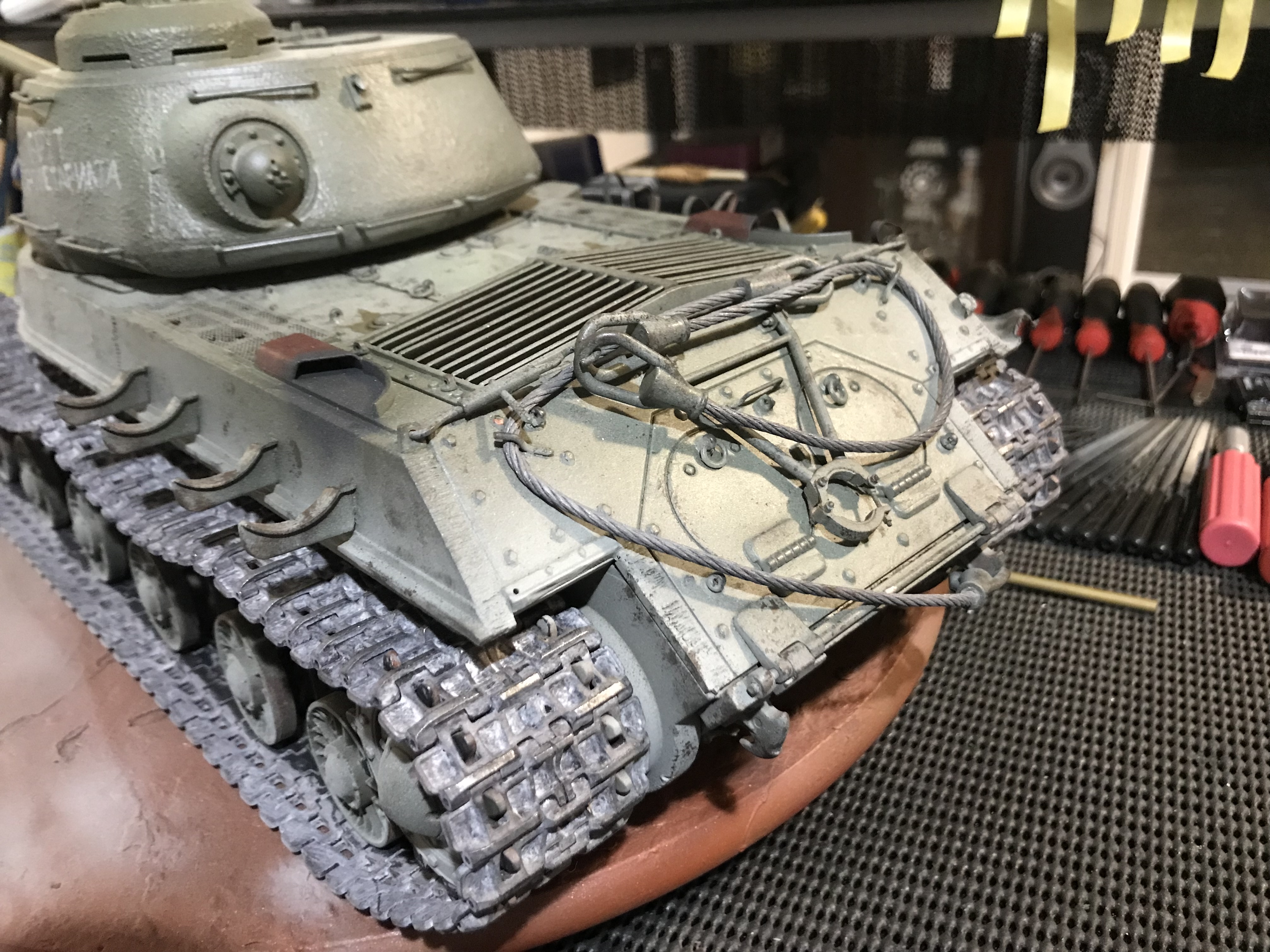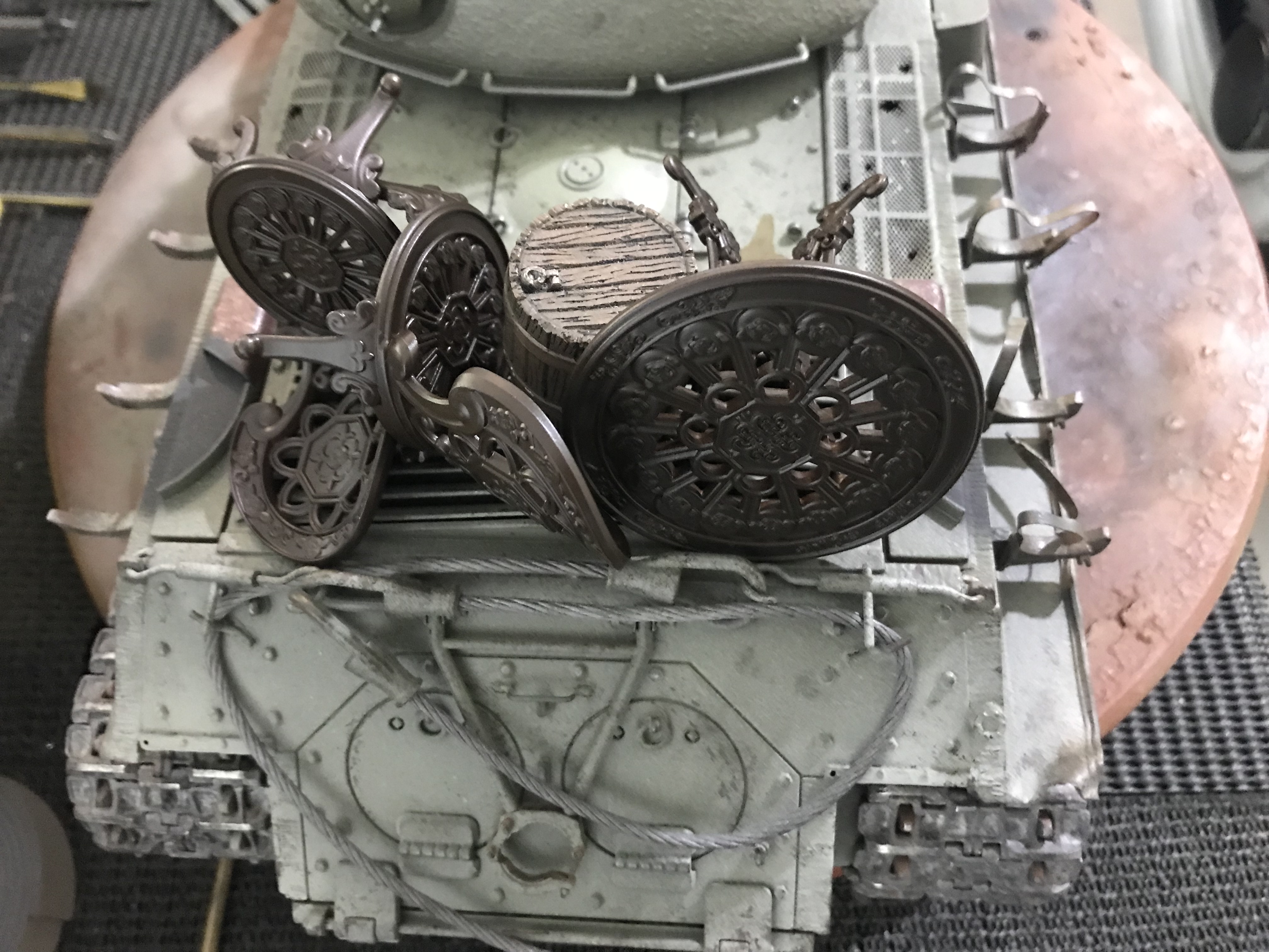 Had a house full of kids & Mums today, so no chance to get out & get small bolts for the spare tracks on the hull front. :(