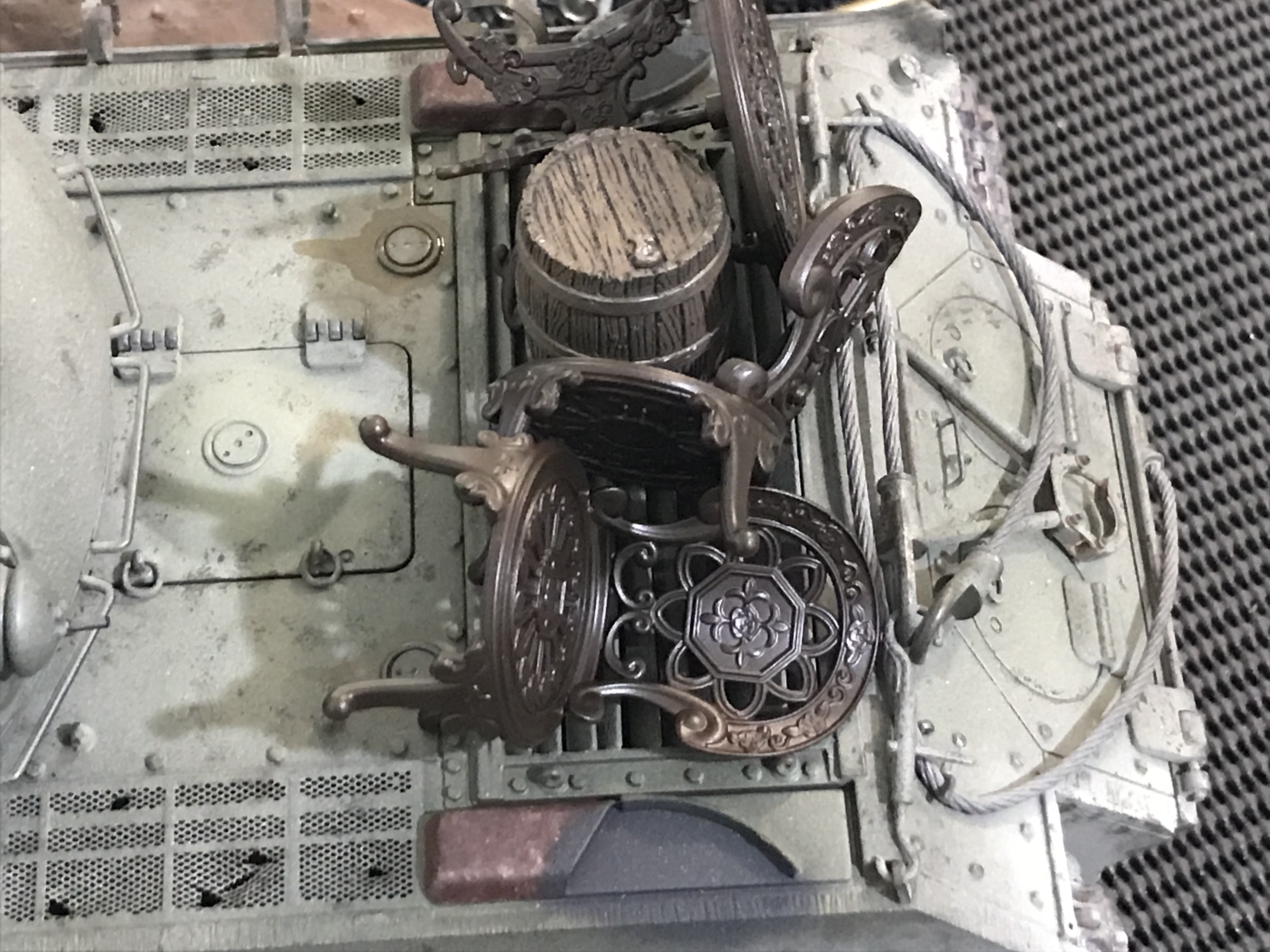 Mucking around with looted furniture and a Cognac barrel as stowage !