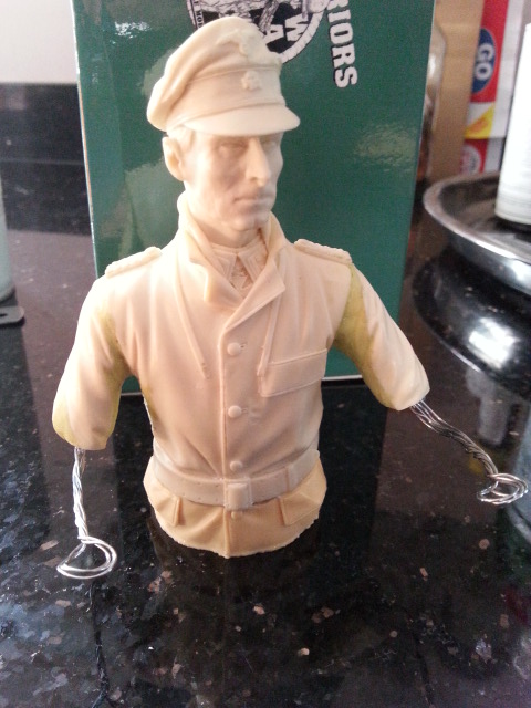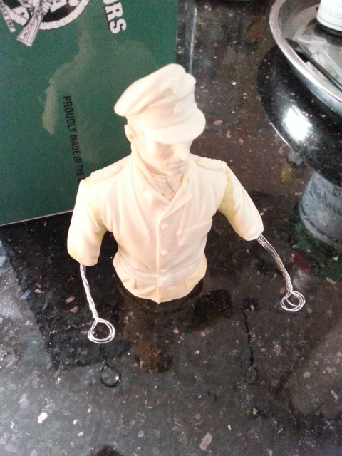 Made a start with the commander figure. Had parts from 3 different busts to build from and add detail. Decided to sculpt some forearms and hands from milliput.