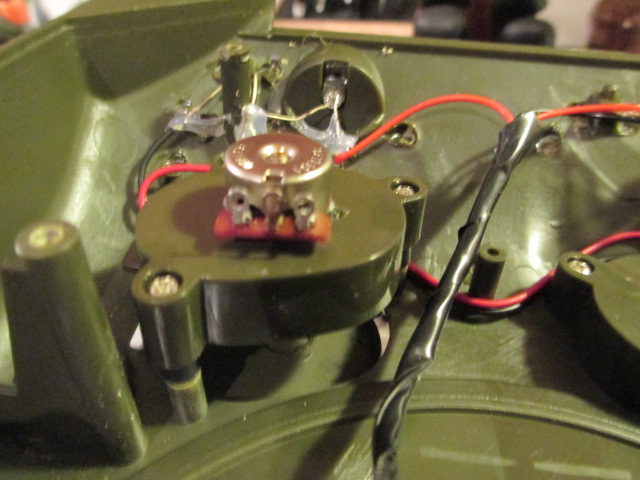 I considered that as well, sir. You can see that in the next to last photo of the completed install, I have shortened up the rubber 'legs' by a 1/4 inch. There was plenty of clearance between the bottom of the pot and the gearbox but a little extra never hurts. ;o) The On\Off switch for the tank will go over in the Driver's hatch. The insert is deep enough so that no modification should be required there. Thank you very much! for the encouragement.