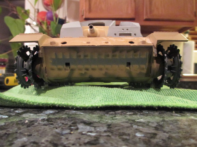 Thank you, Sir. Today was a beautiful day and I had to spend it outdoors, cleaning up after weeks of rain. So, I'll work on the primer tomorrow. I did manage to complete the putty work on the lower and put some thought into correcting the appearance of the rear bulk head a little more. The real AFV has a radiator air inlet grill under the plating there so I will work up something similar to fill the gap left by the removal of the PZ III lower hull spacer. Pics: