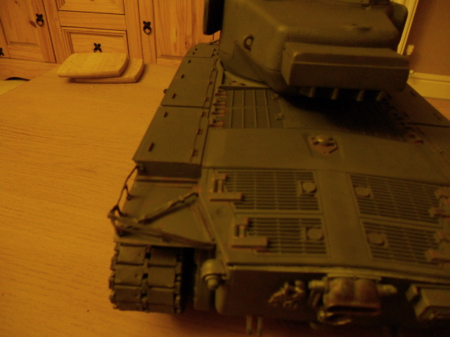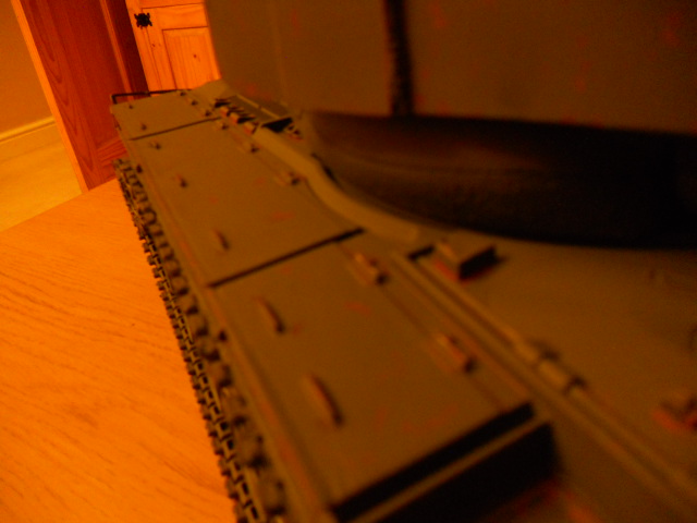 Getting closer to the end, wish I had better light in this place, it's like the black hole of Calcutta at this time of year. The camera always picks up the glare in the oxide powders, the corrosion is barely visible when the tank is in front of me. It is all running and working, has plastic gearboxes with the slipper clutch glued solid with araldite. Need to change the servo position as it doesn't have enough clearance when the barrel is on full elevation.