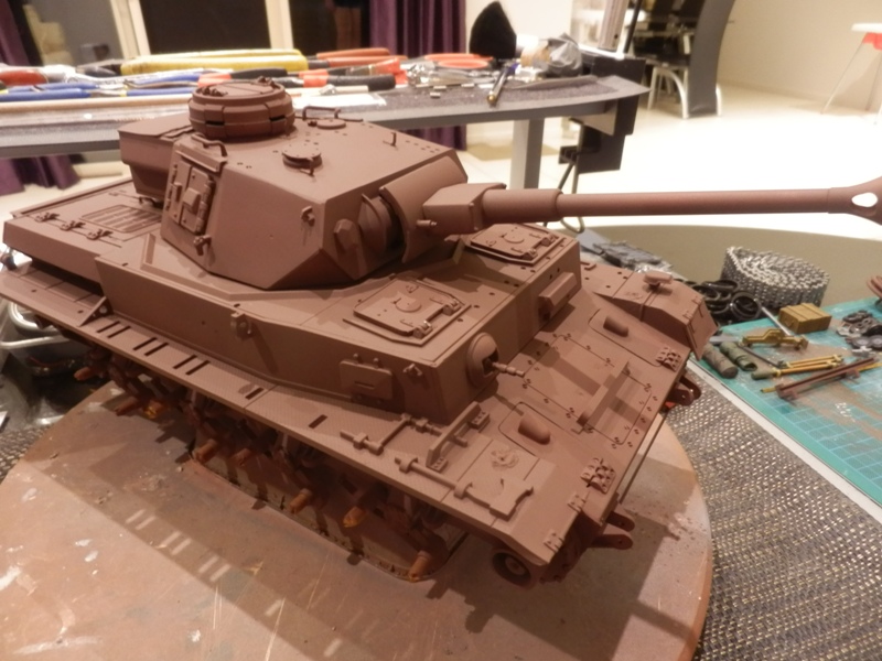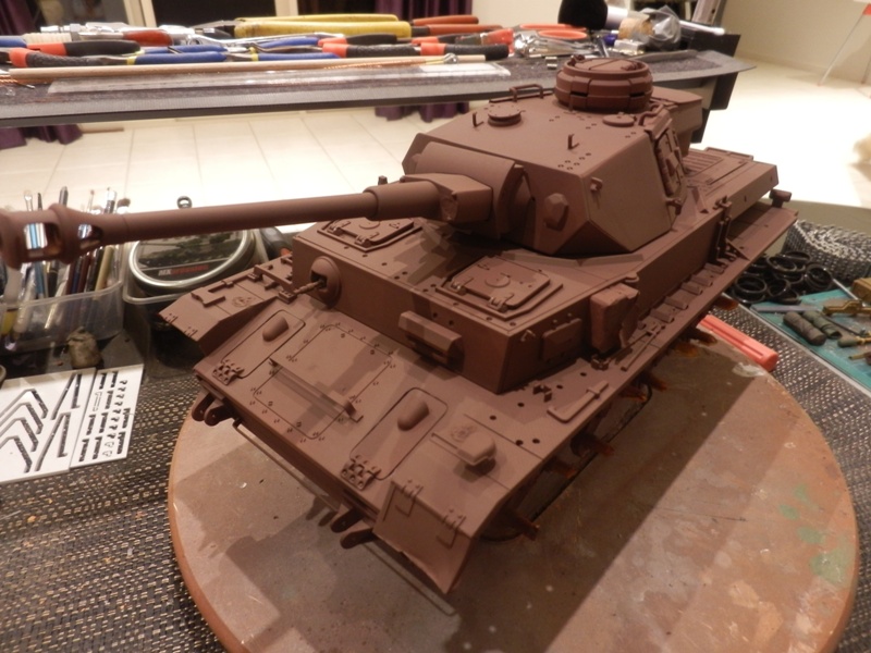 I got the rest of the primer on all my bits today, I'm using XF-9 hull red which I dont normally use. As the top coat is going to be XF-59 Desert Yellow, which is very light, I went with the dark primer to hopefully calm down the brightness of the desert yellow.