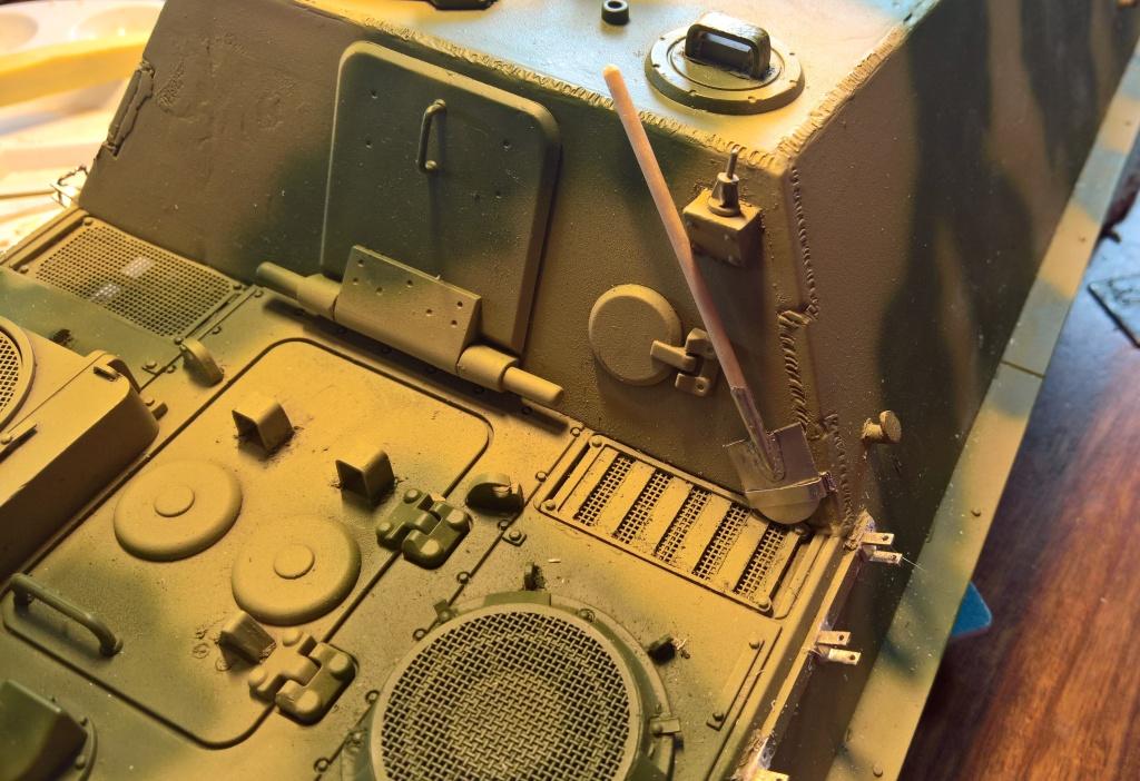 I am glad to have more Projects going... Attached some Details to the Panther G upper. Made the tub for a 1/35 Revell Leo I and just soldered track TrackCable holder.