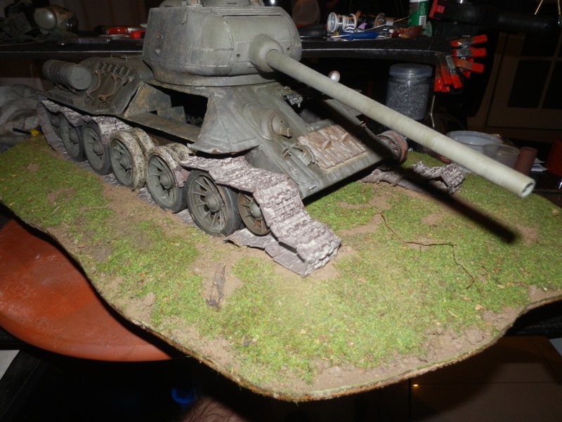 Then set about covering the rest of the base in an irregular coat of grass & debris to blend the tank into the base as if it had sunken in over time.