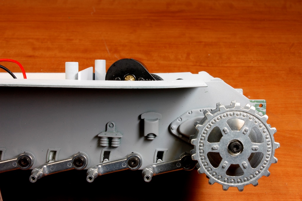 Just a tip, the panthers had small rollers on the transmission final drive housing to stop the track folding in on itself & breaking when reversing.