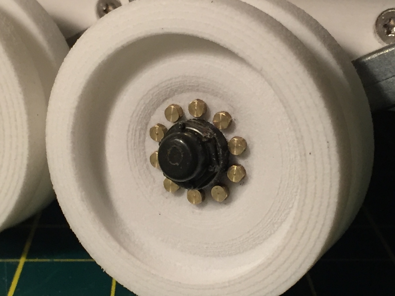 The centurion hub caps will be installed later. If the Shapeways road wheels had 8 bolts like it should have instead of 10, they would not look so crowded. The heads are a bit too big and it is normally the other end that should be present on the outside face, with a nut on each. However, i could not find 1.2mm nuts of the right size. With more knowledge and experience, someone can make a much better job i am sure.