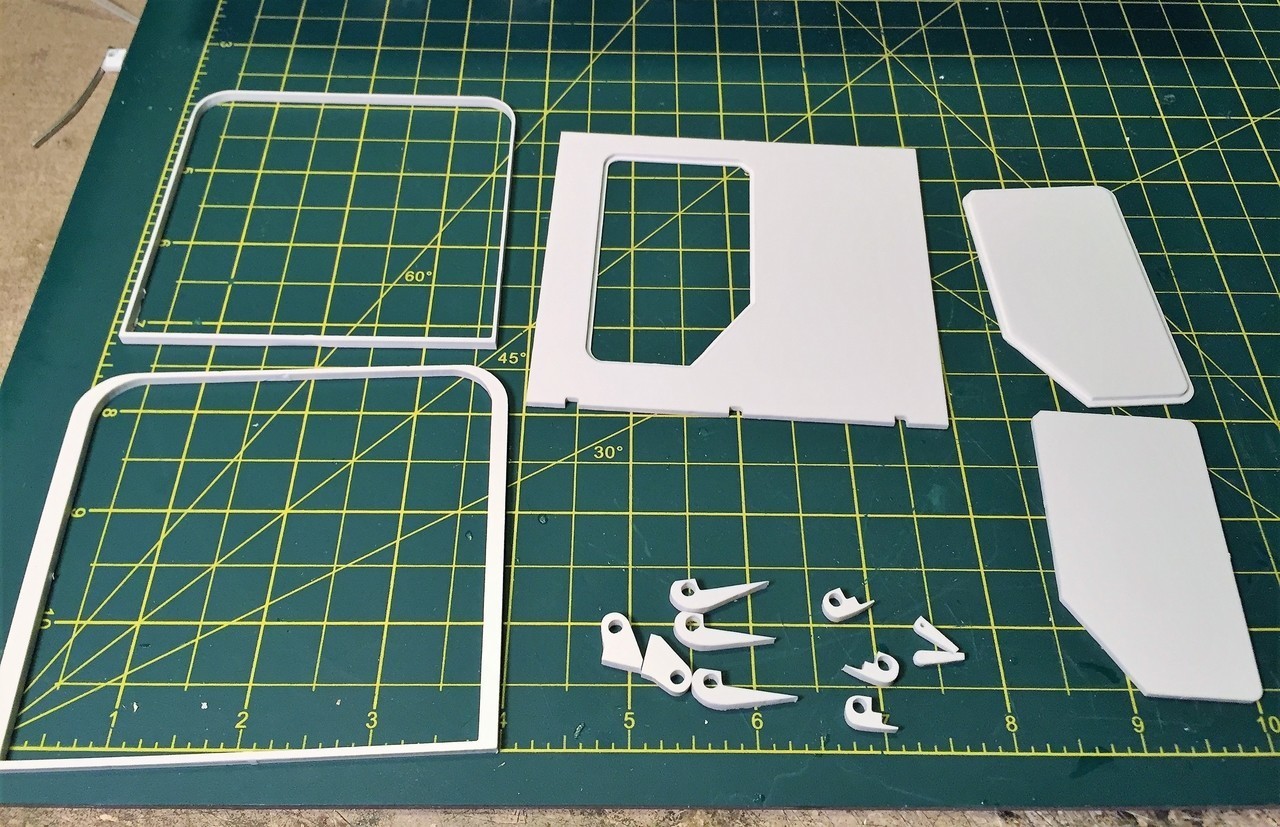 These are the ramp parts coming with the kit. The frame on the upper left is for the hull. As for the frame on the lower left, the instructions show it being used on the inside of the door but i did not find a use for it.