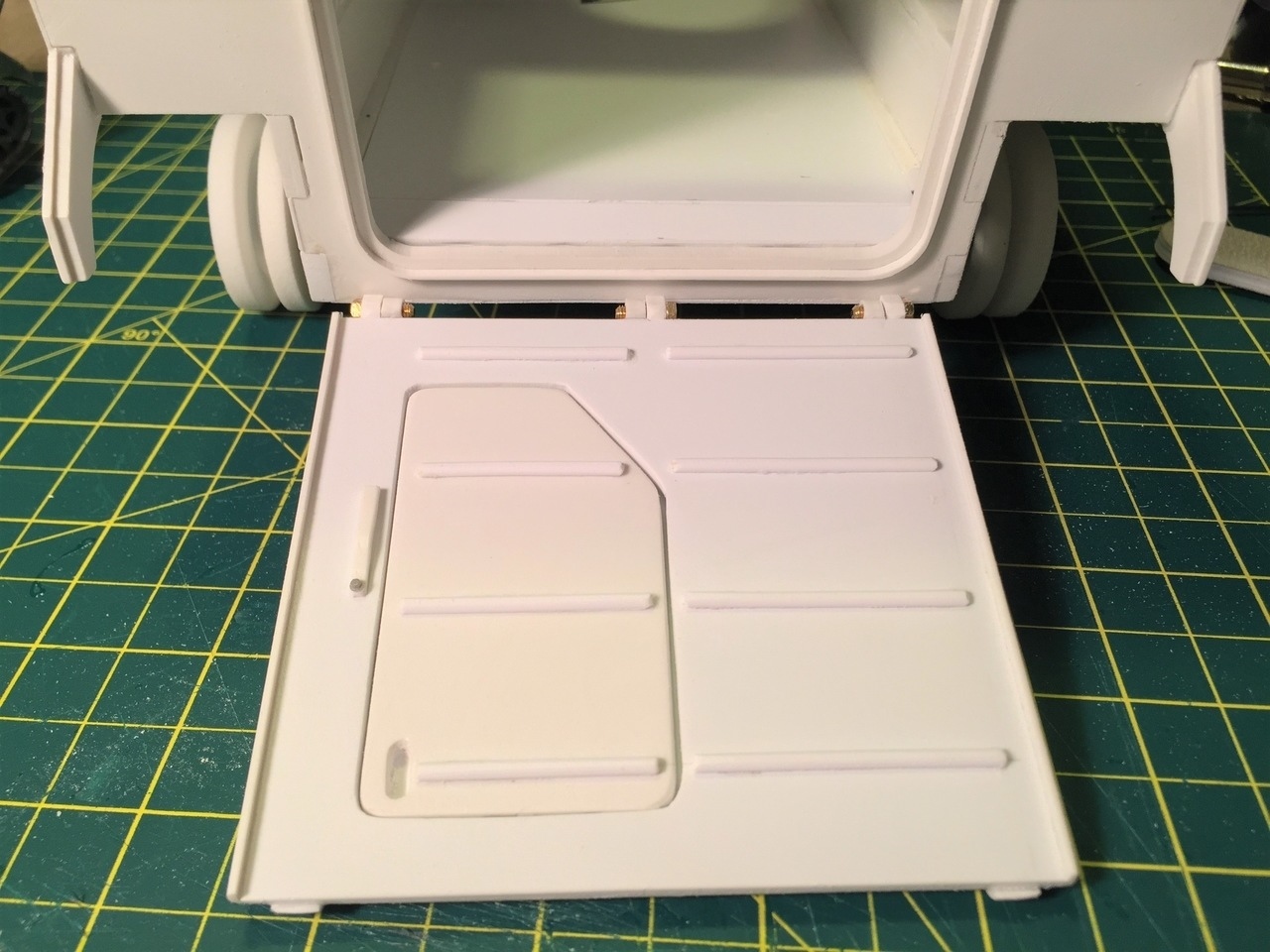 Although the hatch is provided with a double layer for the right thickness, the kit does not provide it for the ramp itself and it must be created in plasticard, and must fit the thickness of the hatch.