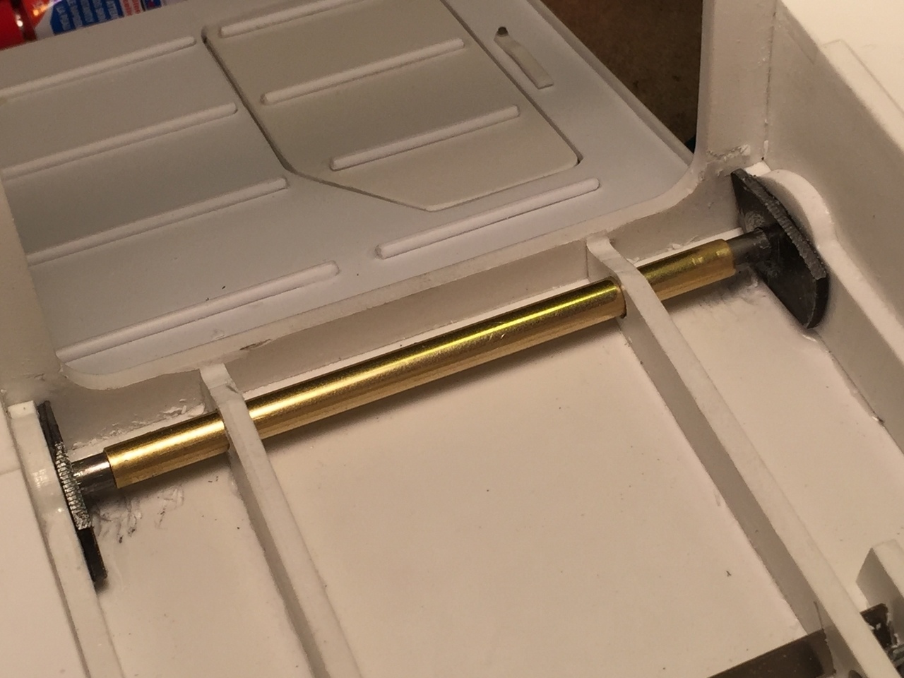 The Shapeways wheels are that, just wheels. The axles and fittings needs to be figured out. I made spacers out of 2mm plasticard to glue between the two wheels in order to get the proper spacing between them.