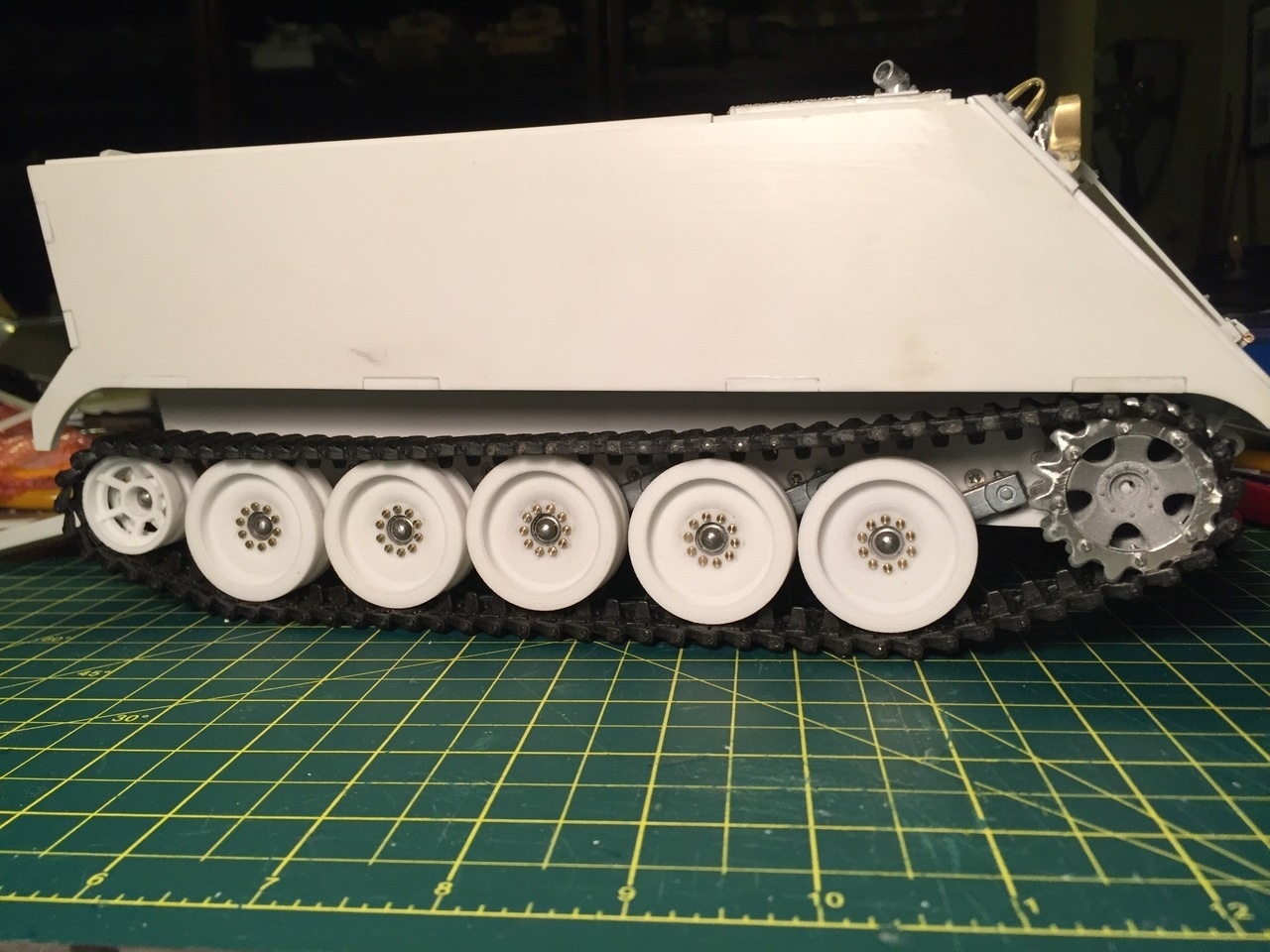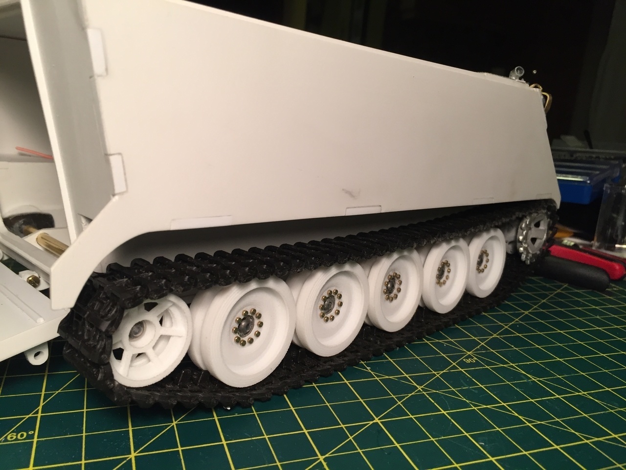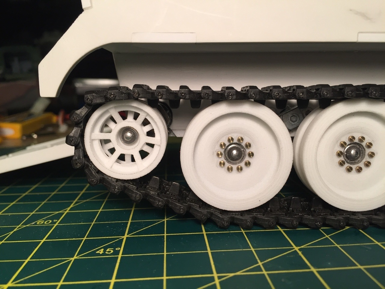 When creating the road wheel fittings, it is important to measure everything in relations to the suspension arms so that the road wheels are perfectly aligned with the sprockets.