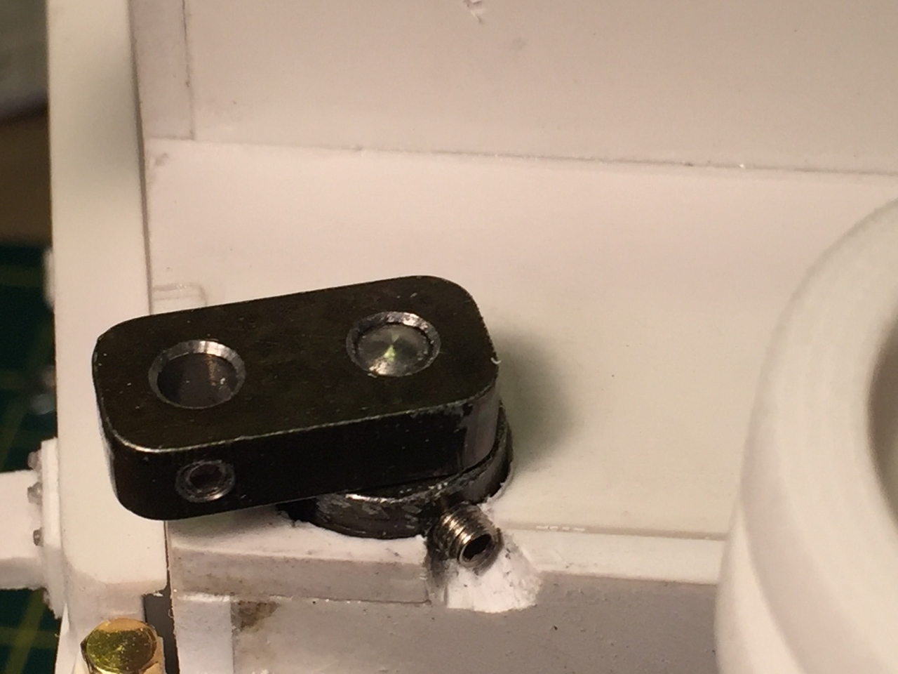 It was a struggle to find a way to link up the idler with the Henntec adjuster. Made an axle out of a 3mm pin and aluminum tubing.