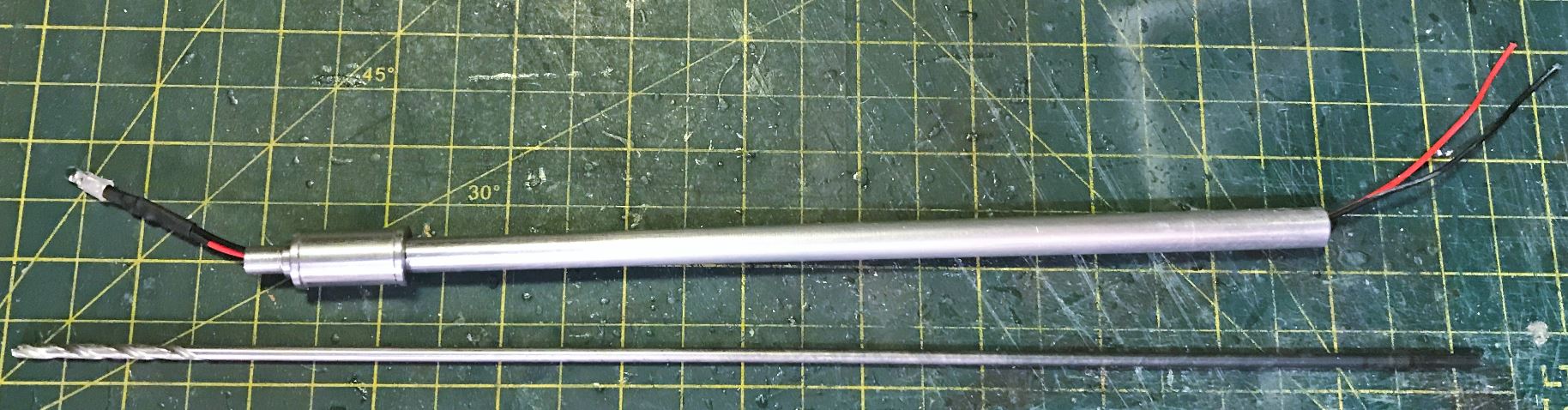 This is an M41 aluminum gun barrel purchased at Tankzone many years ago. I was badly surprised to see that it is not empty inside. So, in order to install the gun flash (important to me), I had to drill through 23mm (9 inches) thick of solid aluminum using a specialized long drill bit. I used a Bosch BL2735 to drill through the barrel, it sells for about $12. It took 90 minutes and it is a good physical exercise, 1mm at the time. It went well and the hole is strait end to end. It is worth it as otherwise, it is a solid metal stick.