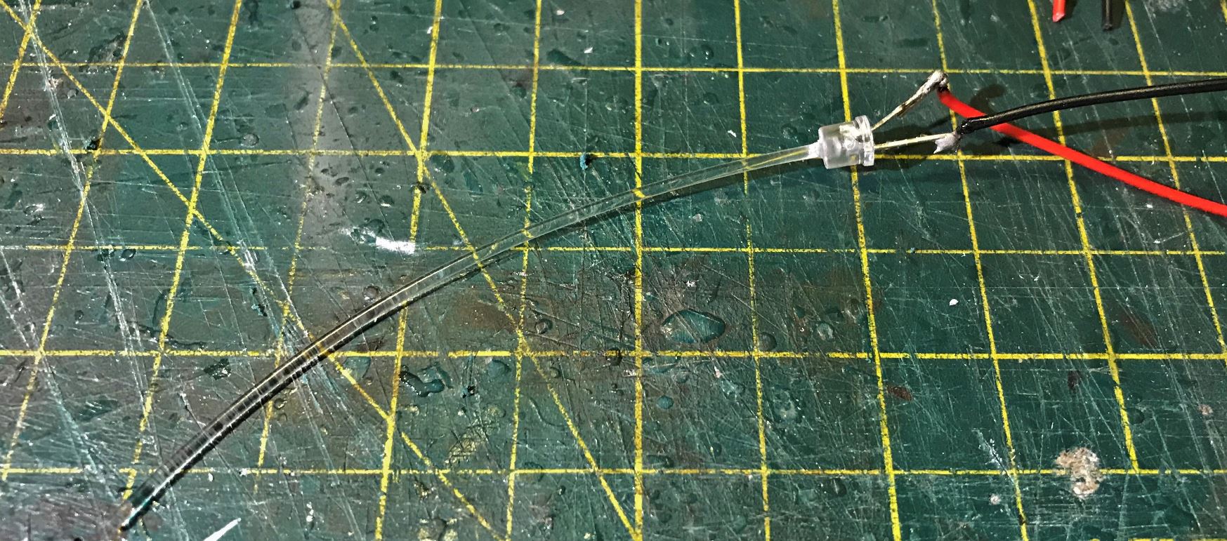 This is the LED and a fiber optic string superglued to it for the coax machine gun. A hole is made in the LED for a clean connection with the fiber.