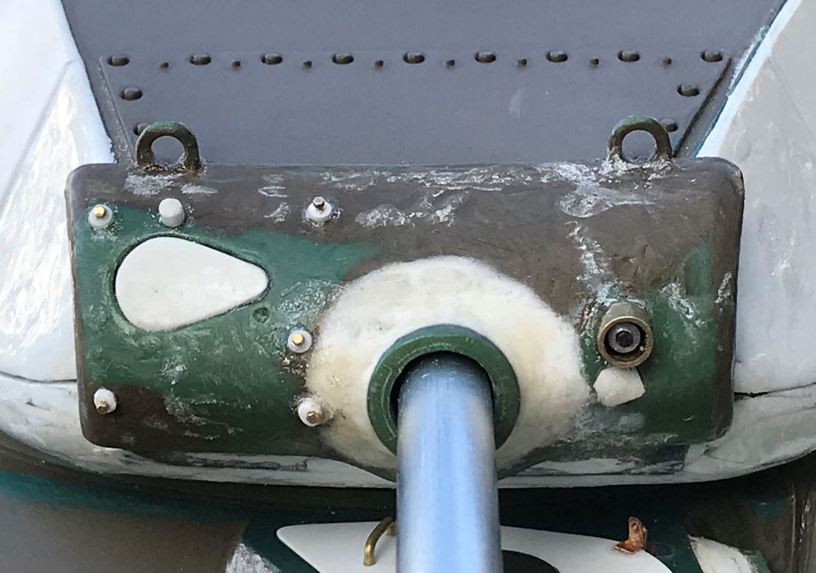 The 2 shaft halves are glued together with a compound called Epoxy Steel. It dries in 8 minutes, allowing the building to properly position the parts and finetune as required before it sets. And solid it is. After 2 hours of drying, I put all my arms strength in trying to split it apart and it did not give any indication that it was stressed in any way. I was planning to put a 4mm coat of the stuff over the whole shaft but I determined it is not required. It can be sanded for a smooth finish.