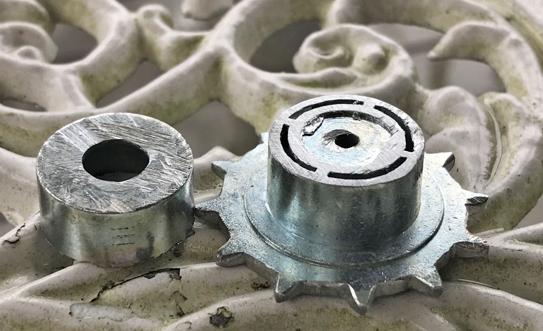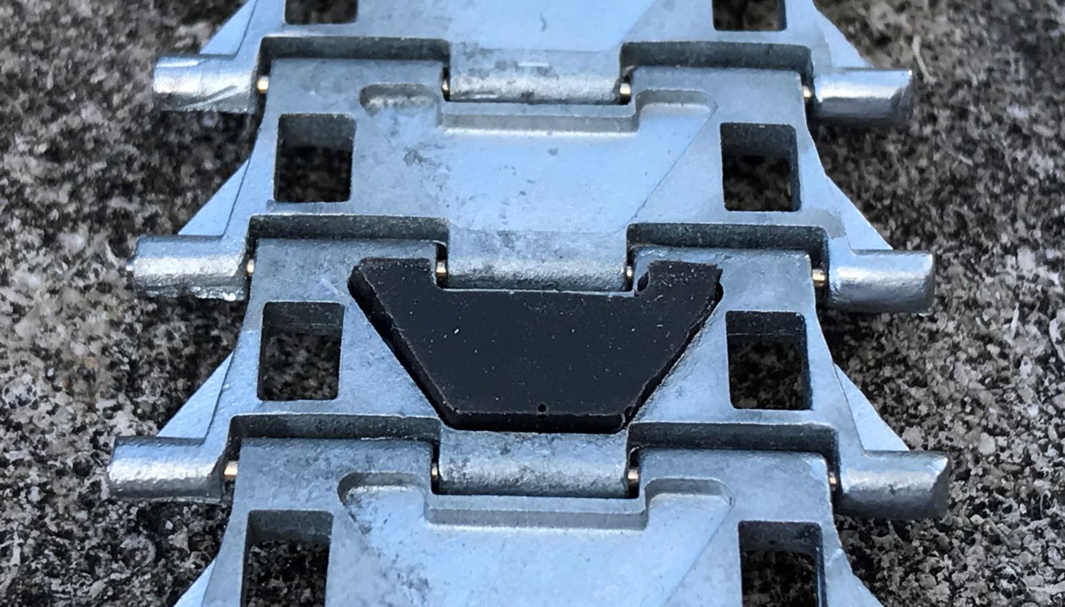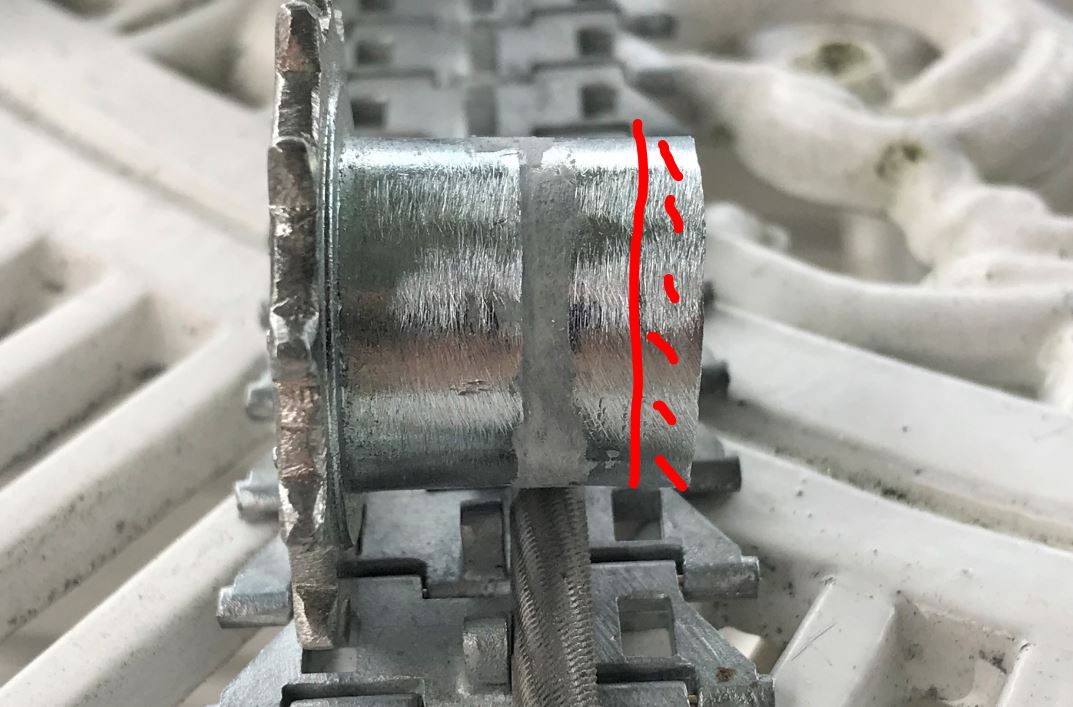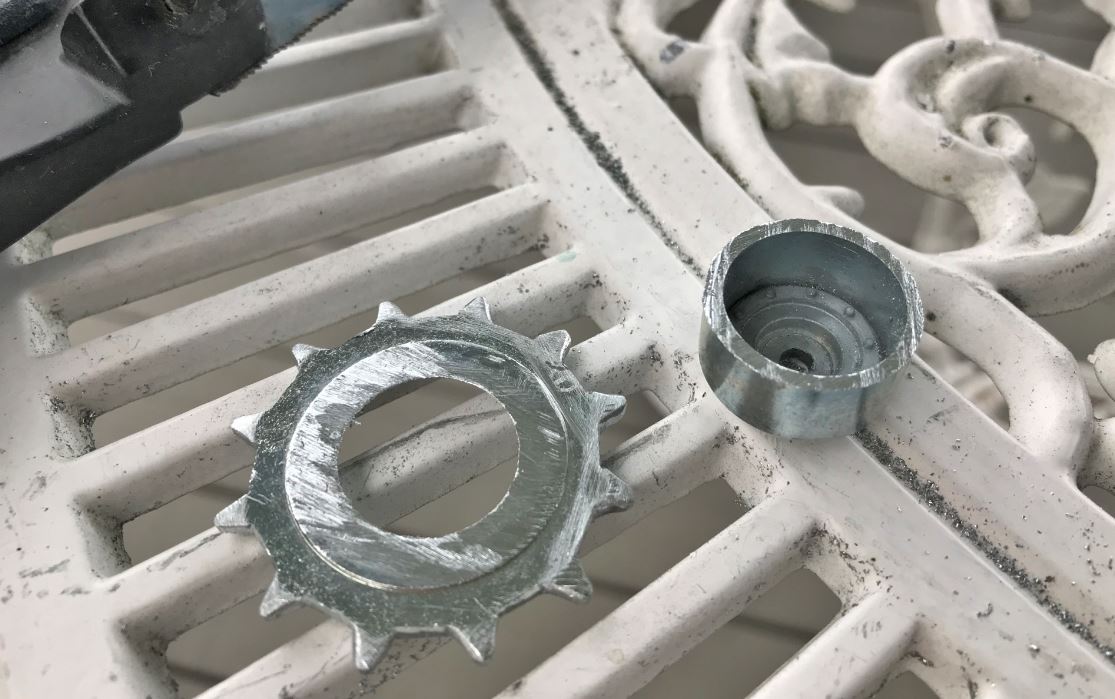 The teeth are hand carved with a hand file, not leaving any sharp corner on them. It makes them run more smoothly with the tracks. The process needs to be done 4 times, once for each sprocket side.