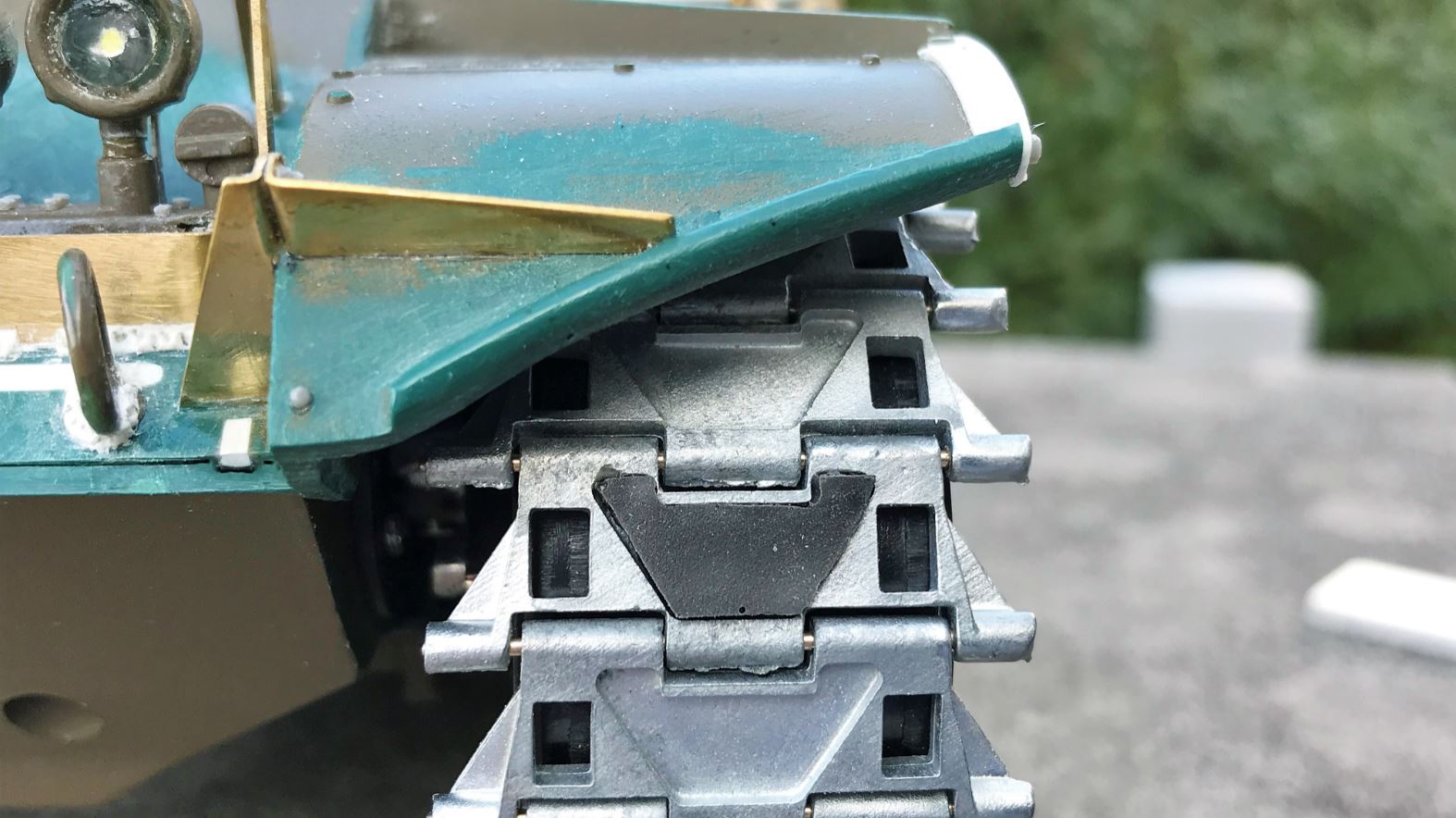 I ordered the AFV-Model MLRS (early model) tracks without knowing if they fit or not. All I knew was that they were of the right 32mm width, and they are obviously of the same track family as the T913E tracks of the M41. To avoid 15 hours of track cutting, I thought it was worth the try. Plus they are metal tracks with rubber pads...