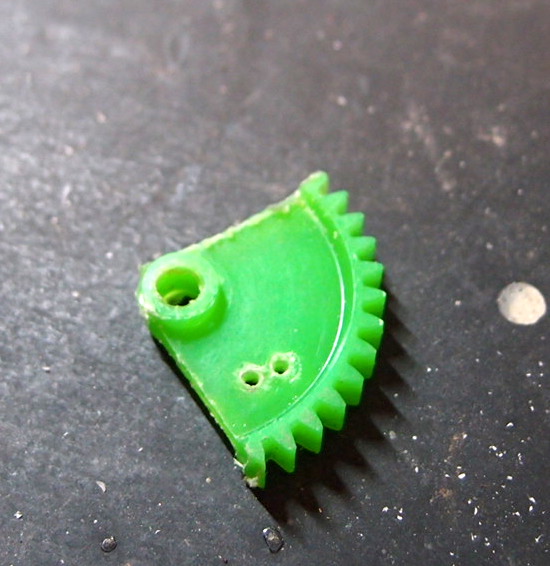 Cut up a gear and drilled out to sit on one of the pivots. Lined up another cut down to match up the gear teeth.