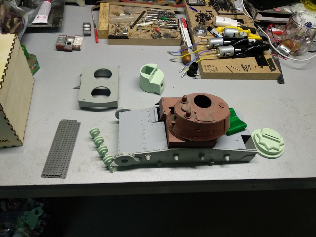 Changes were also made to the 1938 set of T-26. The new towers are already cast in their color and metal trunks will be supplemented to them.