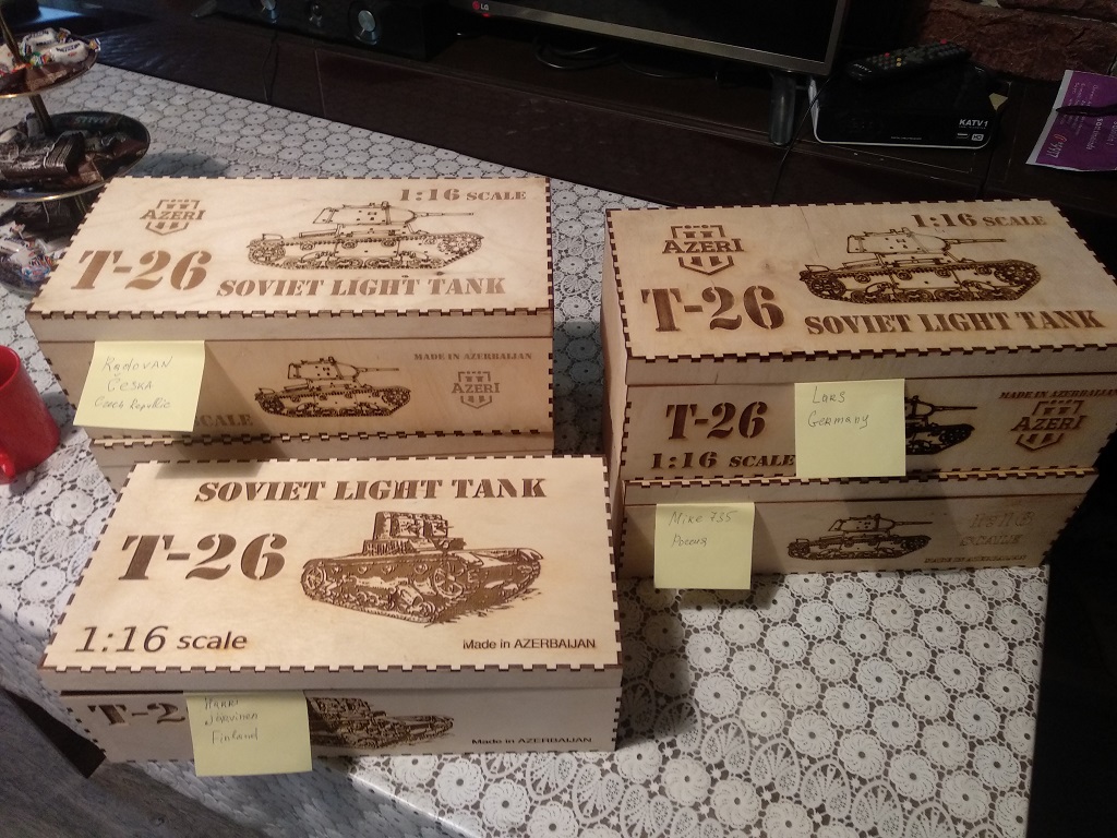 Thank you for the review! I am now engaged in setting up the production of sets. Unfortunately, the sponsors let me down and I have to do everything at my own expense. Therefore, production remains a piece. These kits are prepared for those who were in line first.Herr Dr. Professor wrote:I envy those who will receive the kit. Even the box in which you package the T26 is well done! I hope soon to see some of the built T26s here on RCTW.