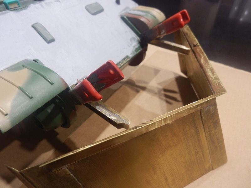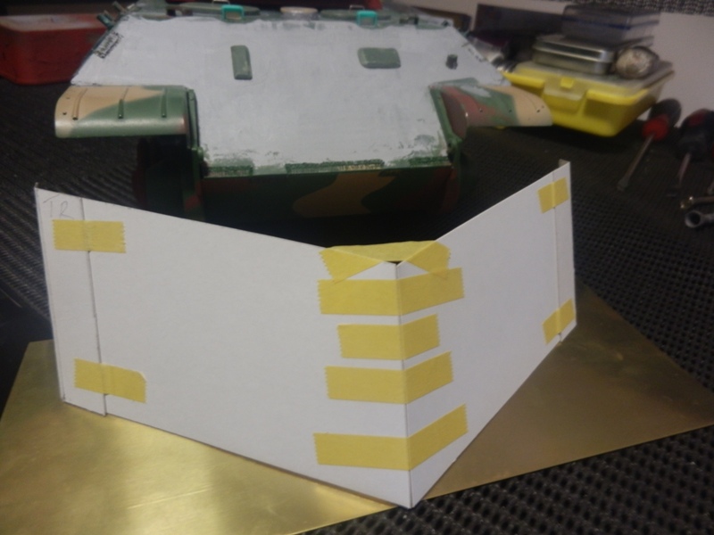 Using the pictures for reference on height, then cutting the cardboard to suit, trialing a few angles & securing it together with Tamiya masking tape, seems to look about right.