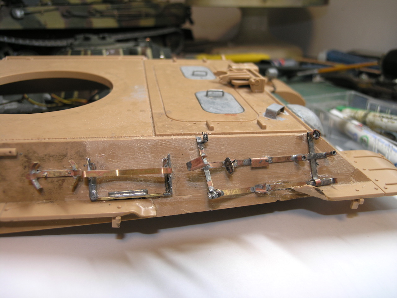 The PE sprue was too fragile so started to replace the block holder and the tool rack, was easy to bend out of shape . Found some brass strip the correct size much stronger.