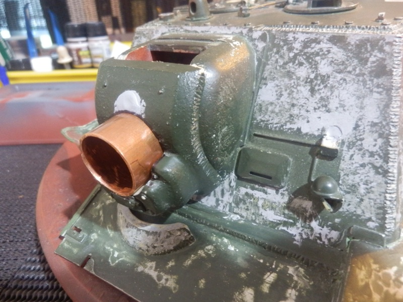 I trimmed the copper sleeve to a closer profile of the mantlet & used putty inside the mantlet to get the tolerances closer.