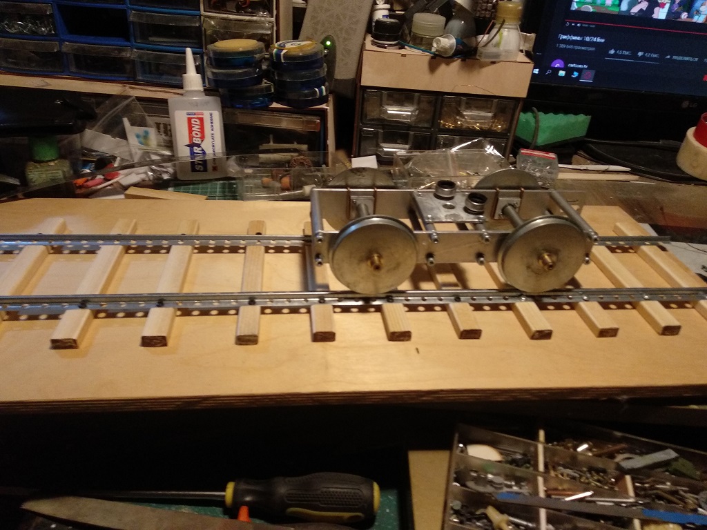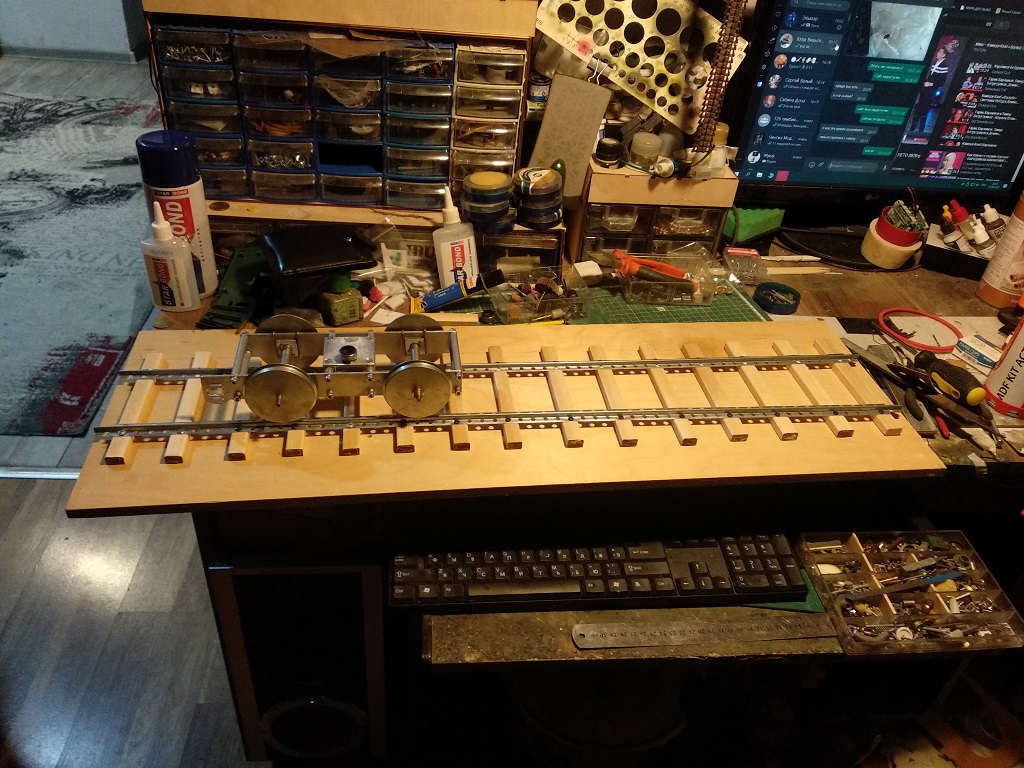The gauge of the railway corresponds to the scale of 1:16. Rels on this scale with a height of 7 mm and a width of 5 mm. I use 10 by 15 mm wood for sleepers.