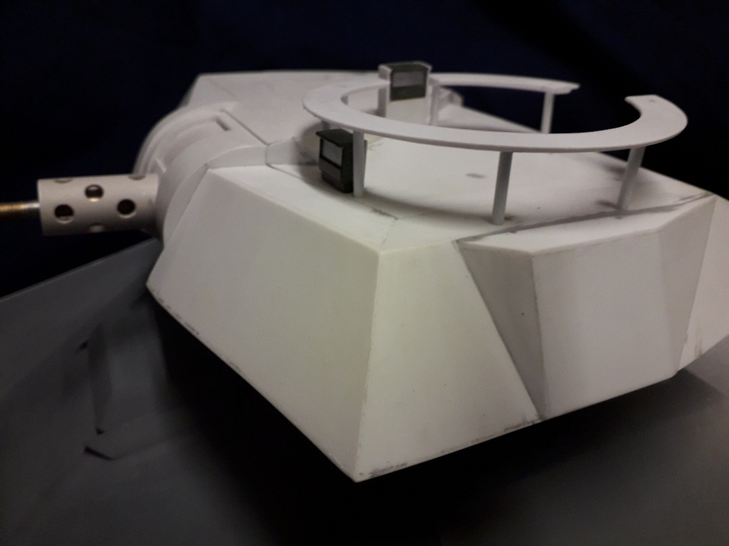 Now to work out the secondary armourment of the gunners MG, this is on a circular raised platform above the hatch, it will have to be in 3 pieces as there is a commanders periscope built into it plus the gunners hatch hinges pass through the ring when the hatch is opened.