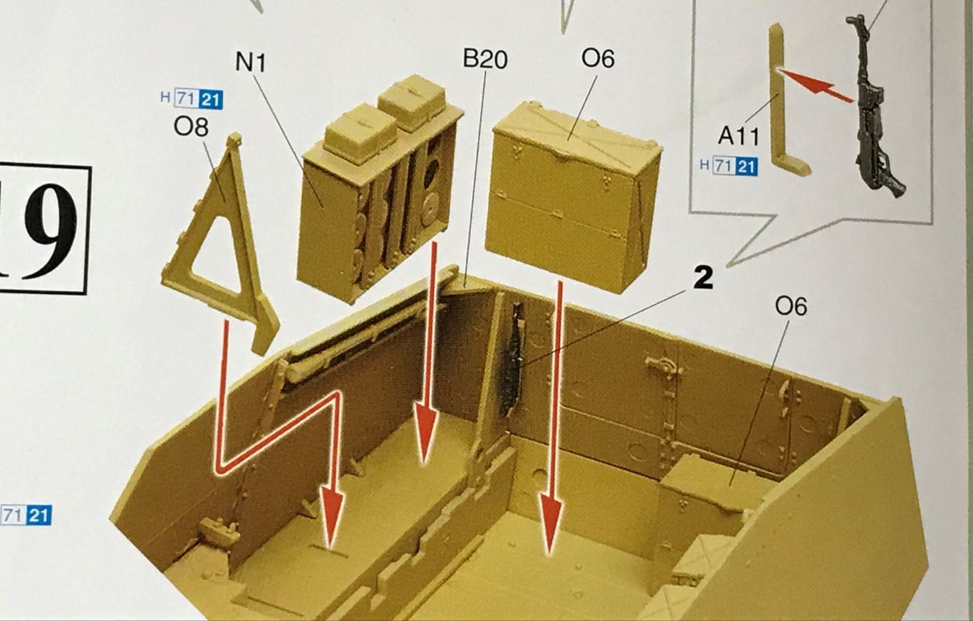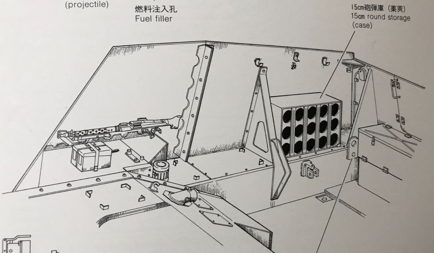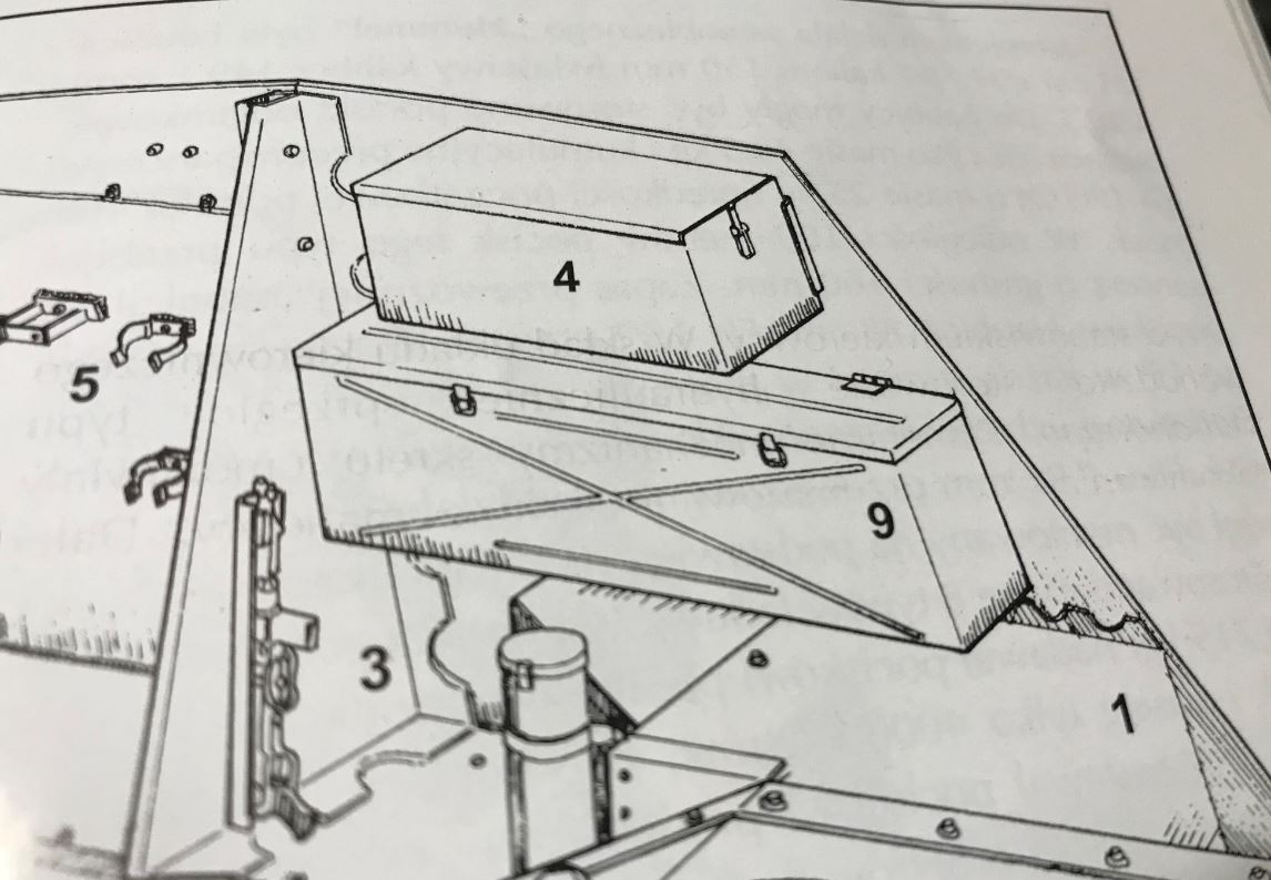 View of the Tamiya instruction on the shape and size of the ammo bins at the rear.